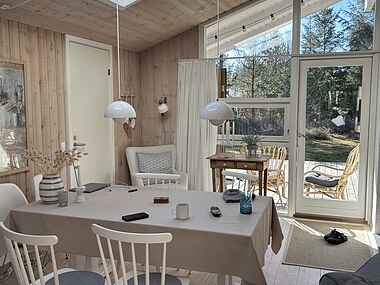 Inde i huset finder du tre generøst dimensionerede soveværelser, der tilbyder luksuriøs komfort og plads nok til at huse en stor familie eller en gruppe af venner. Hvert værelse er smagfuldt indrettet, hvilket skaber en varm og indbydende atmosfære, der inviterer til afslapning efter en dag fyldt med eventyr.
