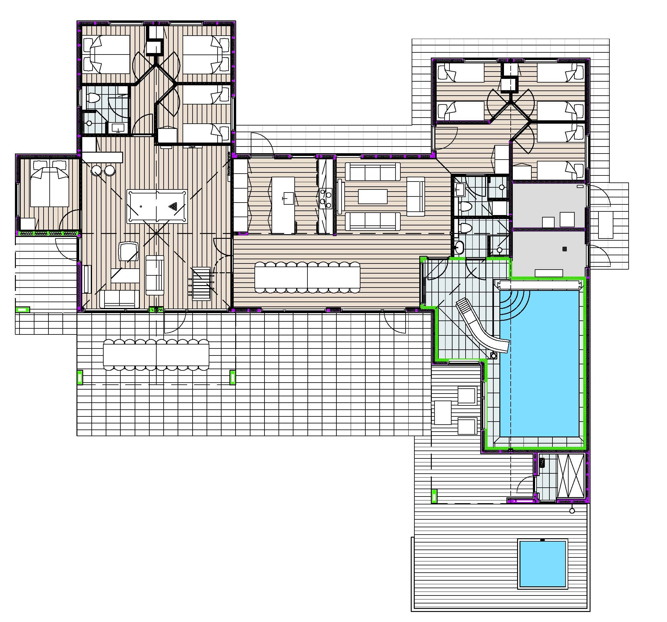Dette moderne poolhus ved Nr. Lyngby, kun 250 meter fra Vesterhavet, er ideelt til ferie med familie og venner. Huset rummer 18 sovepladser fordelt på 7 værelser og 4 hemsepladser samt 3 badeværelser. Det store fællesrum med XL-køkken og langbord skaber rammerne for samvær og fælles madlavning. Aktivitetsrummet byder på spil og hygge for både børn og voksne, mens poolområdet og wellness-terrassen med udendørs spa og sauna indbyder til afslapning året rundt. Udenfor findes en stor møbleret terrasse, loungemøbler og aktivitetsmuligheder som gynge og trampolin. Den private grund med udsigt til havet giver plads til både ro og leg. Bemærk venligst at dette VillaVilla-hus ikke udlejes til ungdomsgrupper.