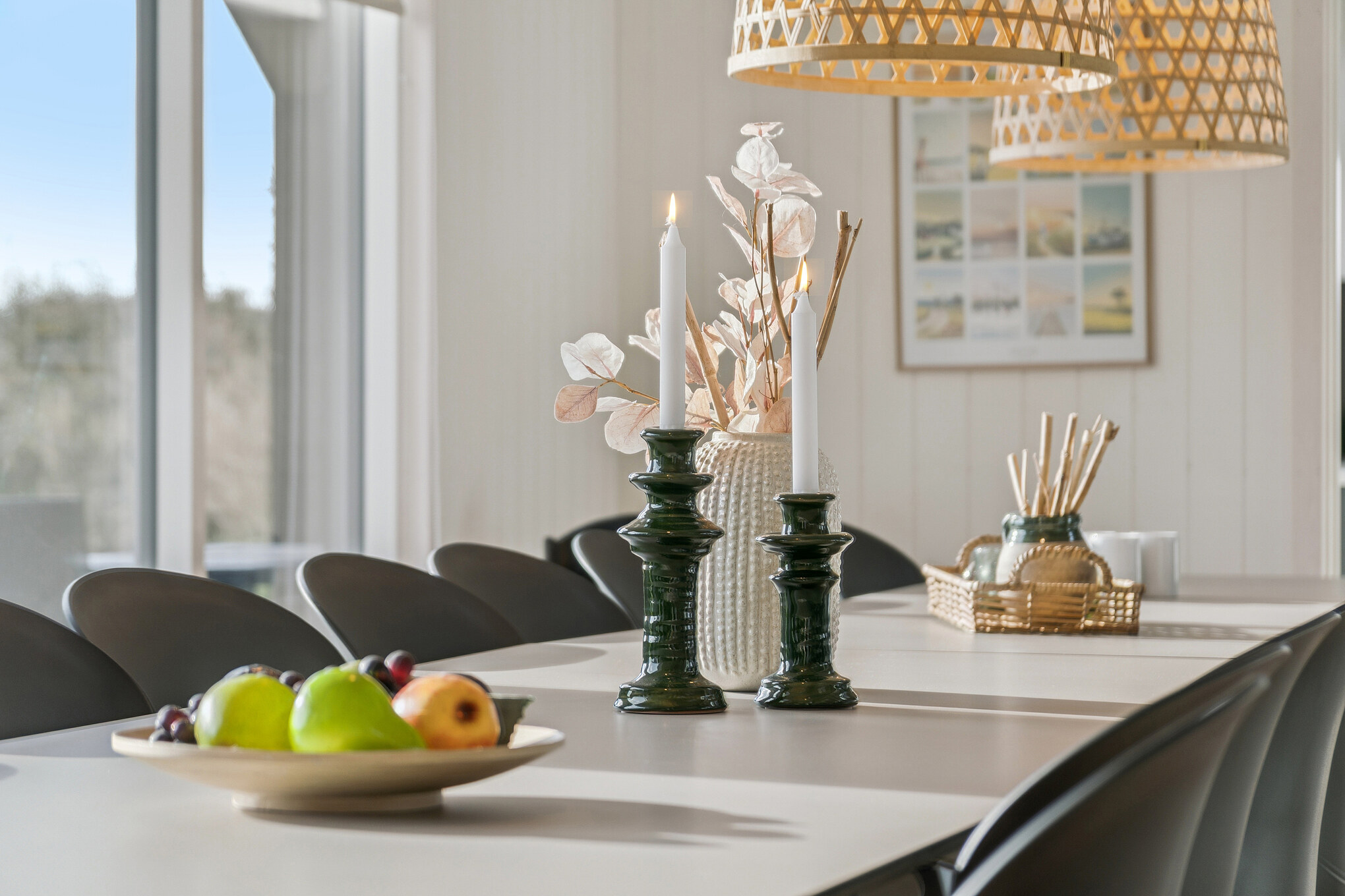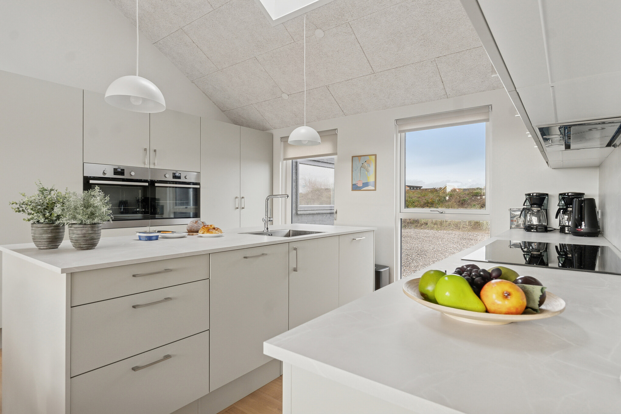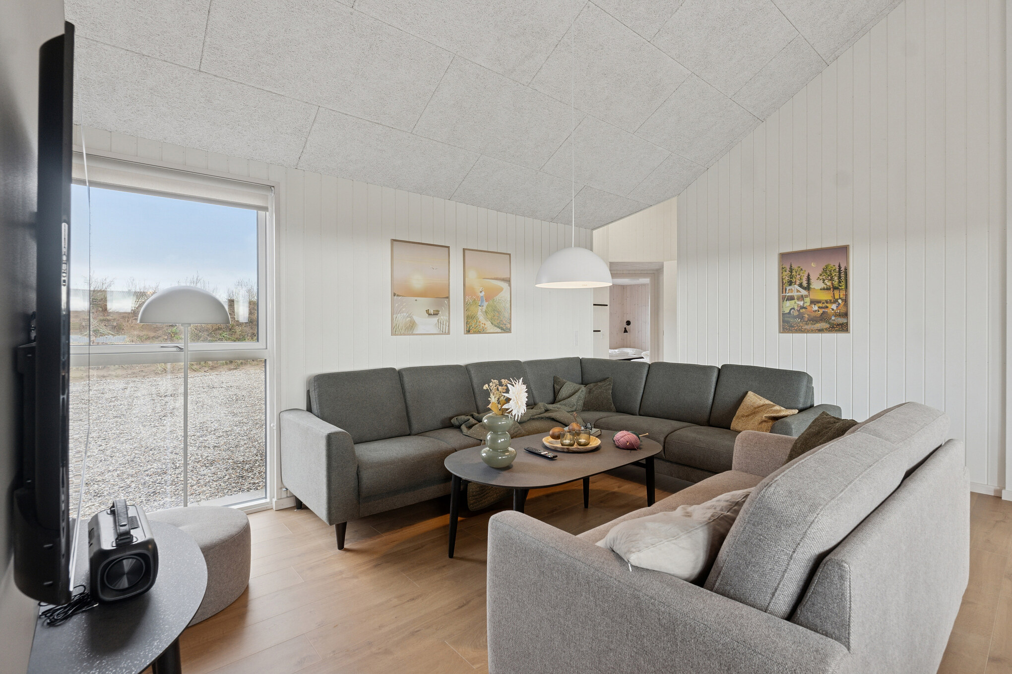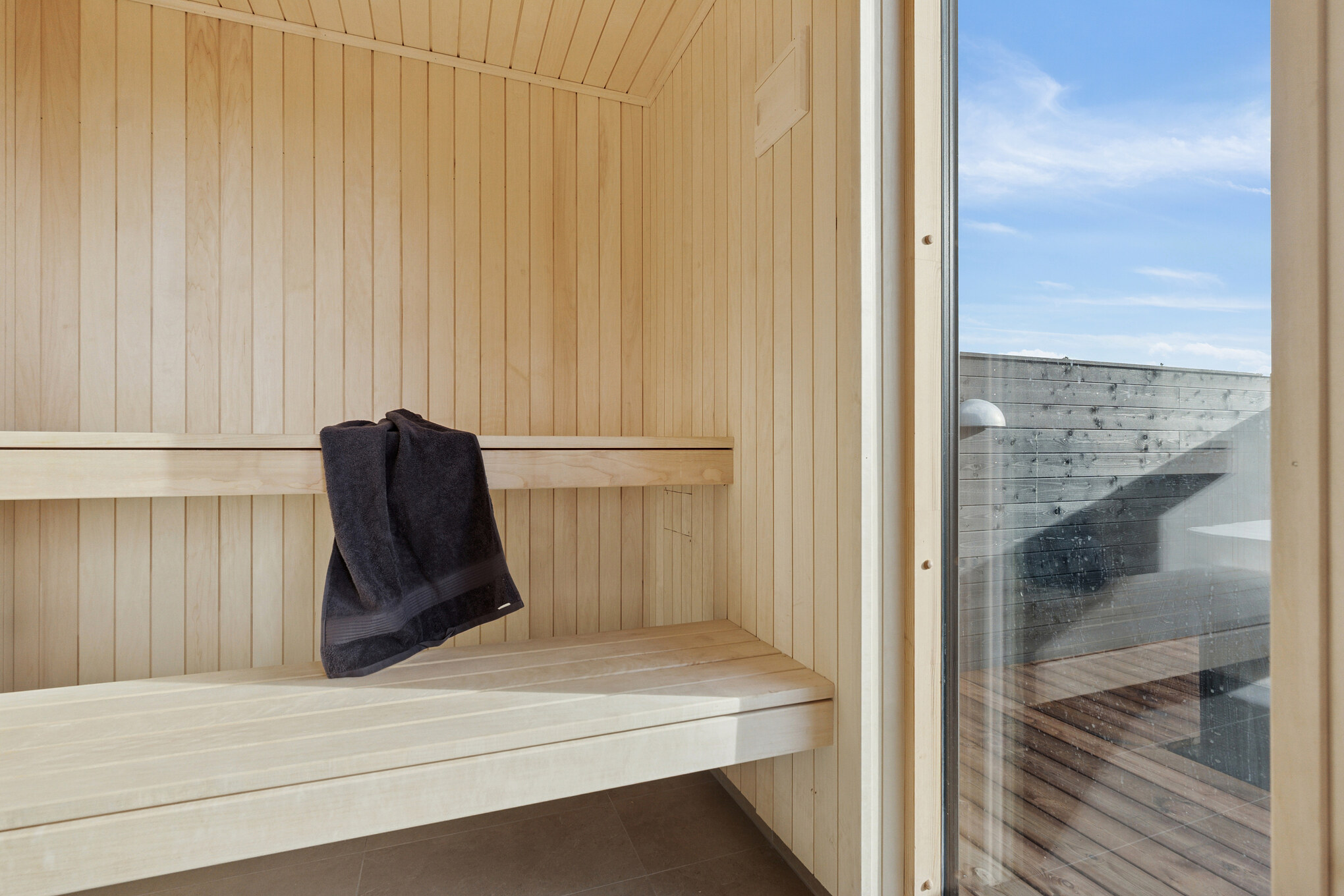 Dette moderne poolhus ved Nr. Lyngby, kun 300 meter fra Vesterhavet, er ideelt til ferie med familie og venner. Huset rummer 18 sovepladser fordelt på 7 værelser og 4 hemsepladser samt 3 badeværelser. Det store fællesrum med XL-køkken og langbord skaber rammerne for samvær og fælles madlavning. Aktivitetsrummet byder på spil og hygge for både børn og voksne, mens poolområdet og wellness-terrassen med udendørs spa og sauna indbyder til afslapning året rundt. Udenfor findes en stor møbleret terrasse, grill, loungemøbler og aktivitetsmuligheder som gynge, trampolin og fodboldmål. Den private grund med udsigt til havet giver plads til både ro og leg.