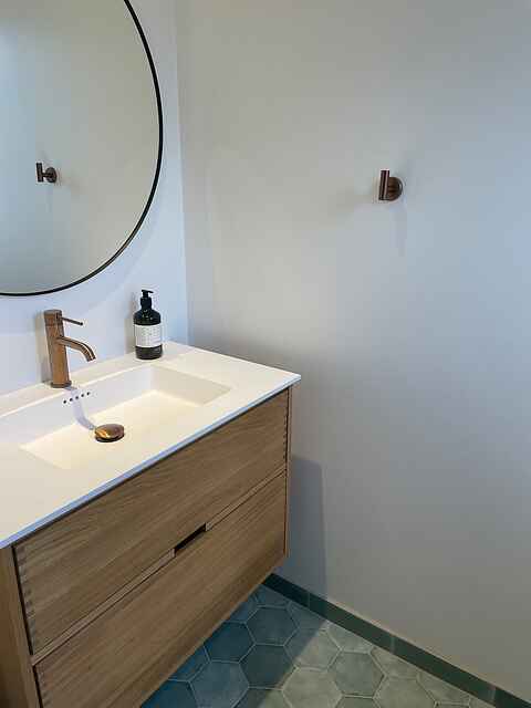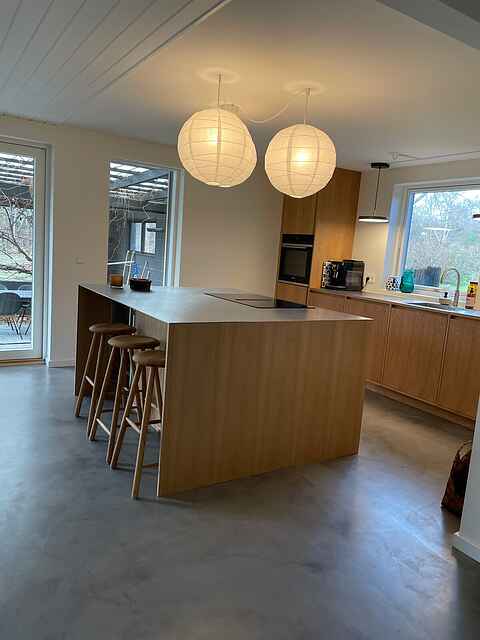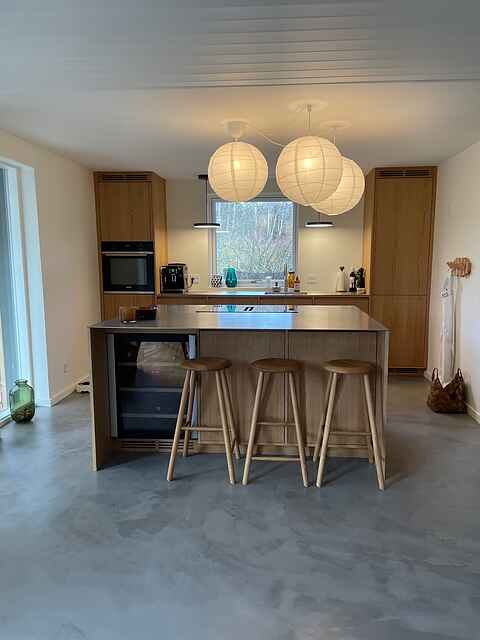 Lækkert køkken med alle faciliteter – opvaskemaskine, vinkøler, quooker og espressomaskine.