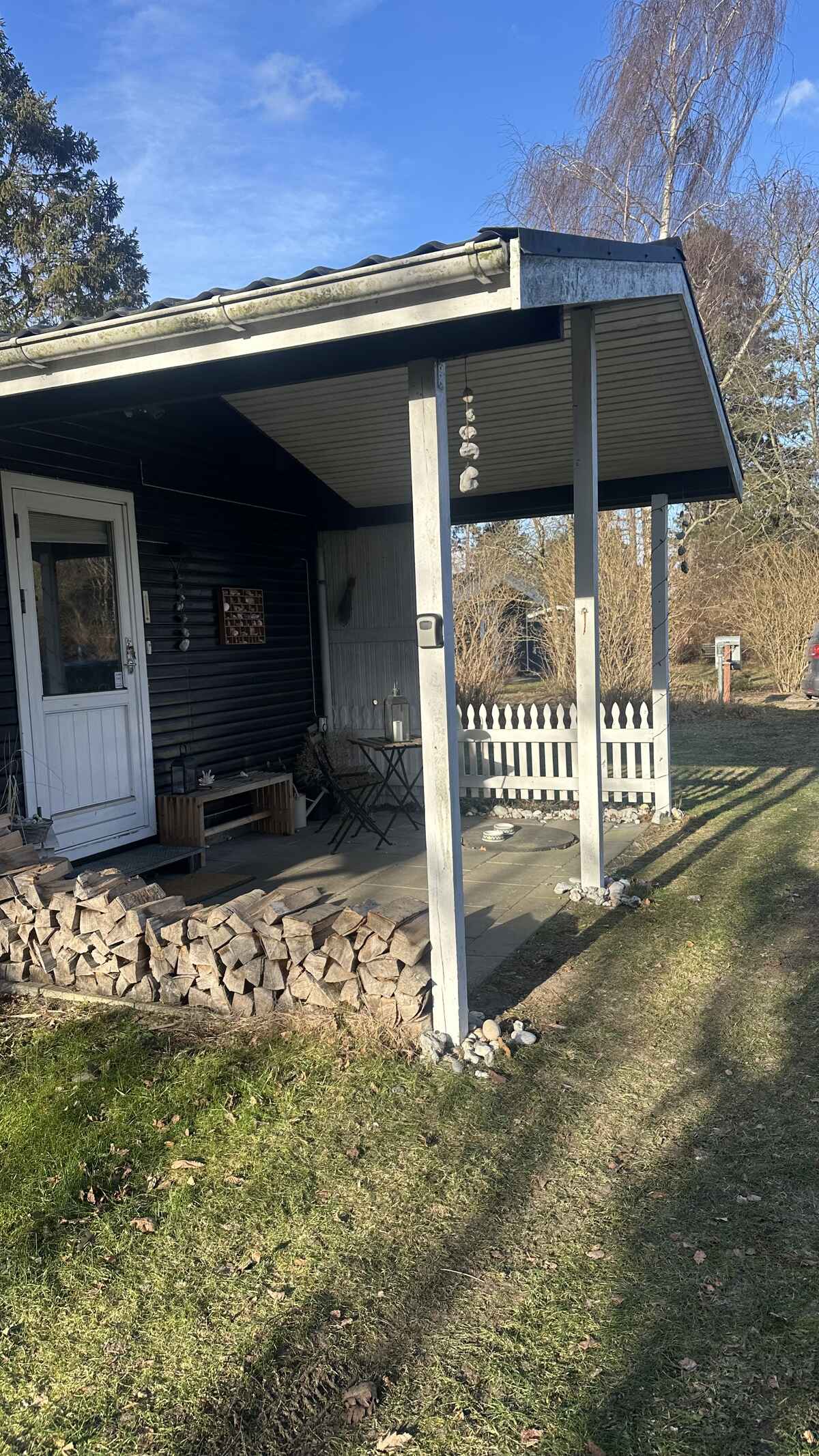 Den store grund byder på masser af plads til leg, boldspil, afslapning i hængekøjen og hyggestunder omkring bålpladsen.