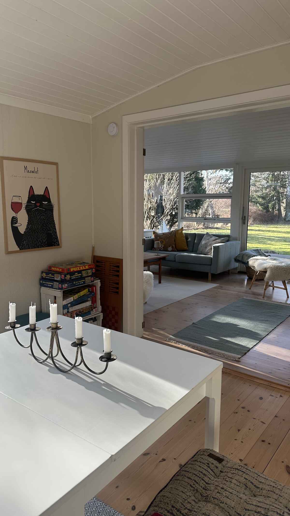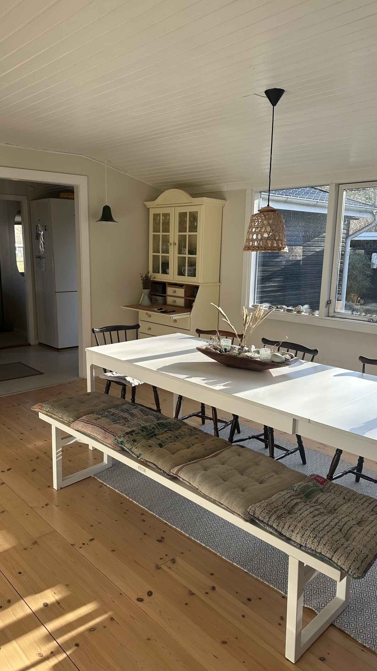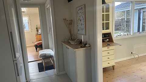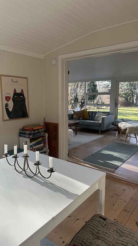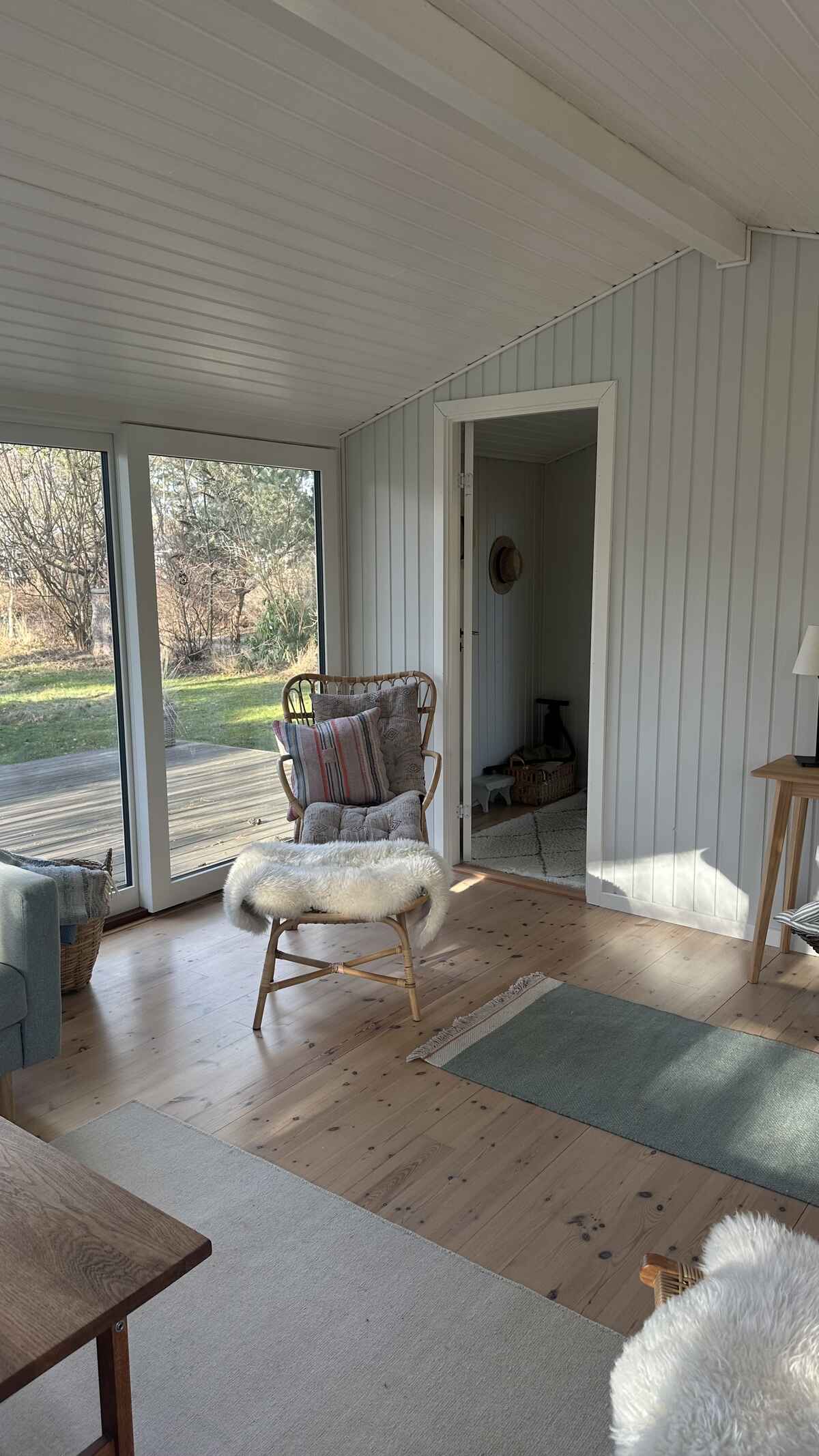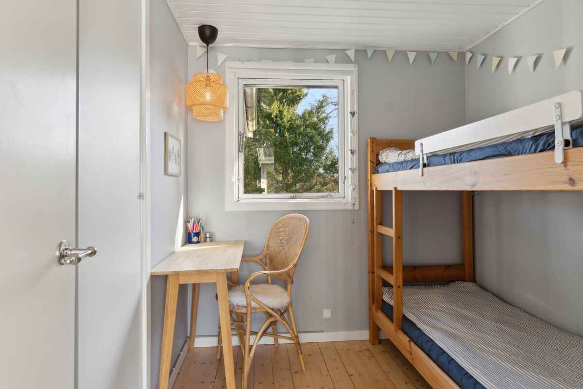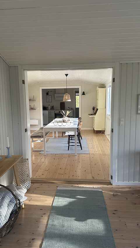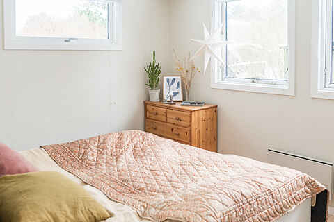 Sommerhuset rummer 8 sovepladser fordelt på tre værelser i hovedhuset og et hyggeligt anneks med dobbeltseng – ideelt for familier eller vennegrupper, der rejser sammen.