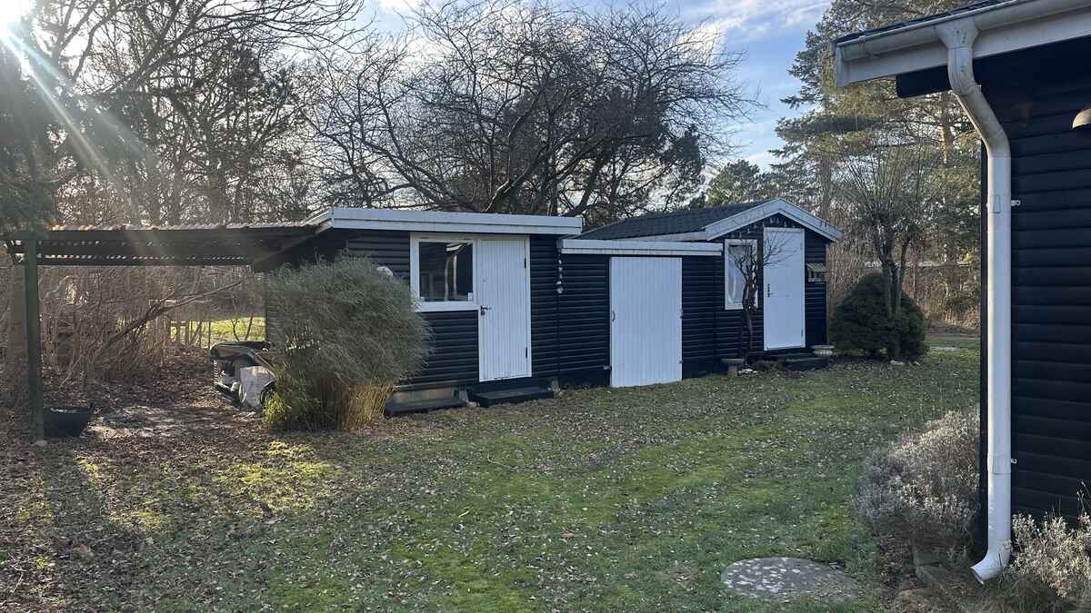 Den store grund byder på masser af plads til leg, boldspil, afslapning i hængekøjen og hyggestunder omkring bålpladsen.