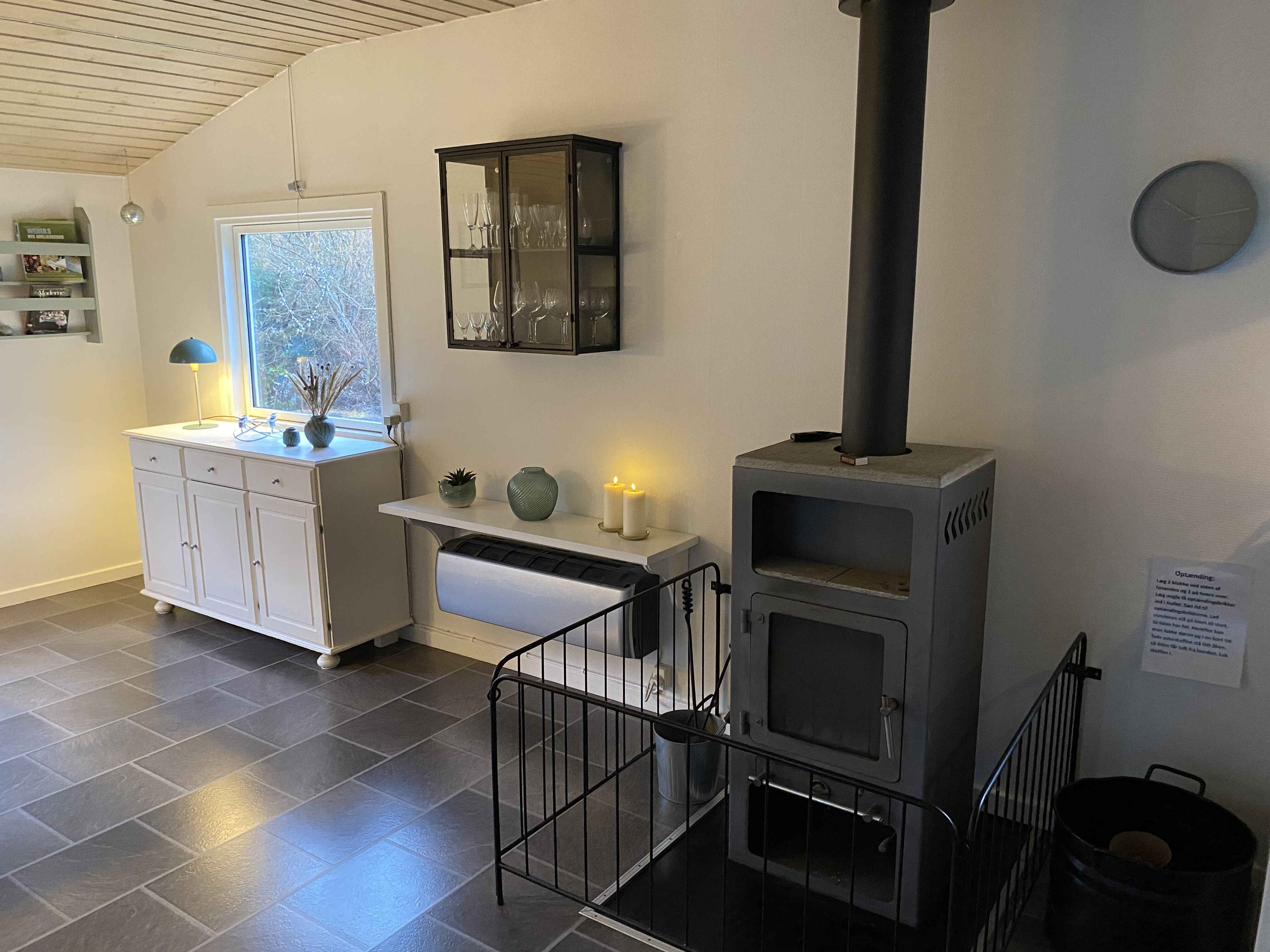 Stuen er hyggeligt indrettet. Her er tv-pakke, og Cromecast, herudover er der tysk parabol tv. Der findes rejseseng, 1 babyhøjstol,2 børnestole, babybadekar, puslebord og klapvogn. Ude findes både kul- og gasgrill.