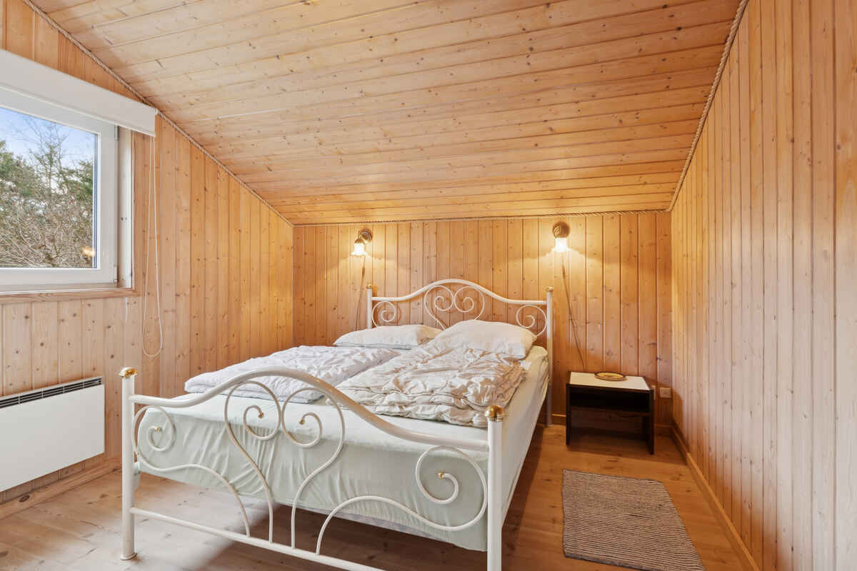 Huset rummer tre soveværelser med i alt seks faste sovepladser. Dertil kommer en hems med to madrasser, som giver ekstra plads til børn eller afslapning. Badeværelset er funktionelt og placeret centralt i huset.