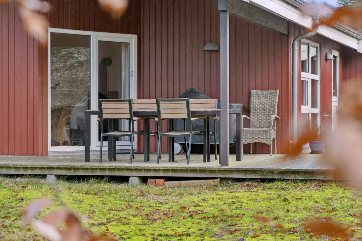 Boligen ligger for enden af en lille grusvej, hvilket giver rolige omgivelser og god privathed. Haven er ugenert og giver mulighed for leg, solbadning og stille stunder.