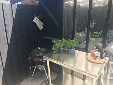 I det skønne pool-område, hvor både børn og voksne kan svømme og more sig, er der indrettet et dejligt, overdækket loungeområde ved den ene ende af poolen, så man kan overvåge poolen på en behagelig og betryggende vis, når man ikke selv vil med i vandet. Her er også grill, havemøbler og liggestole samt p-plads til bilen.