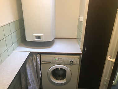 Originalt køkken med opvaskemaskine. Der er også vaskemaskine til rådighed.