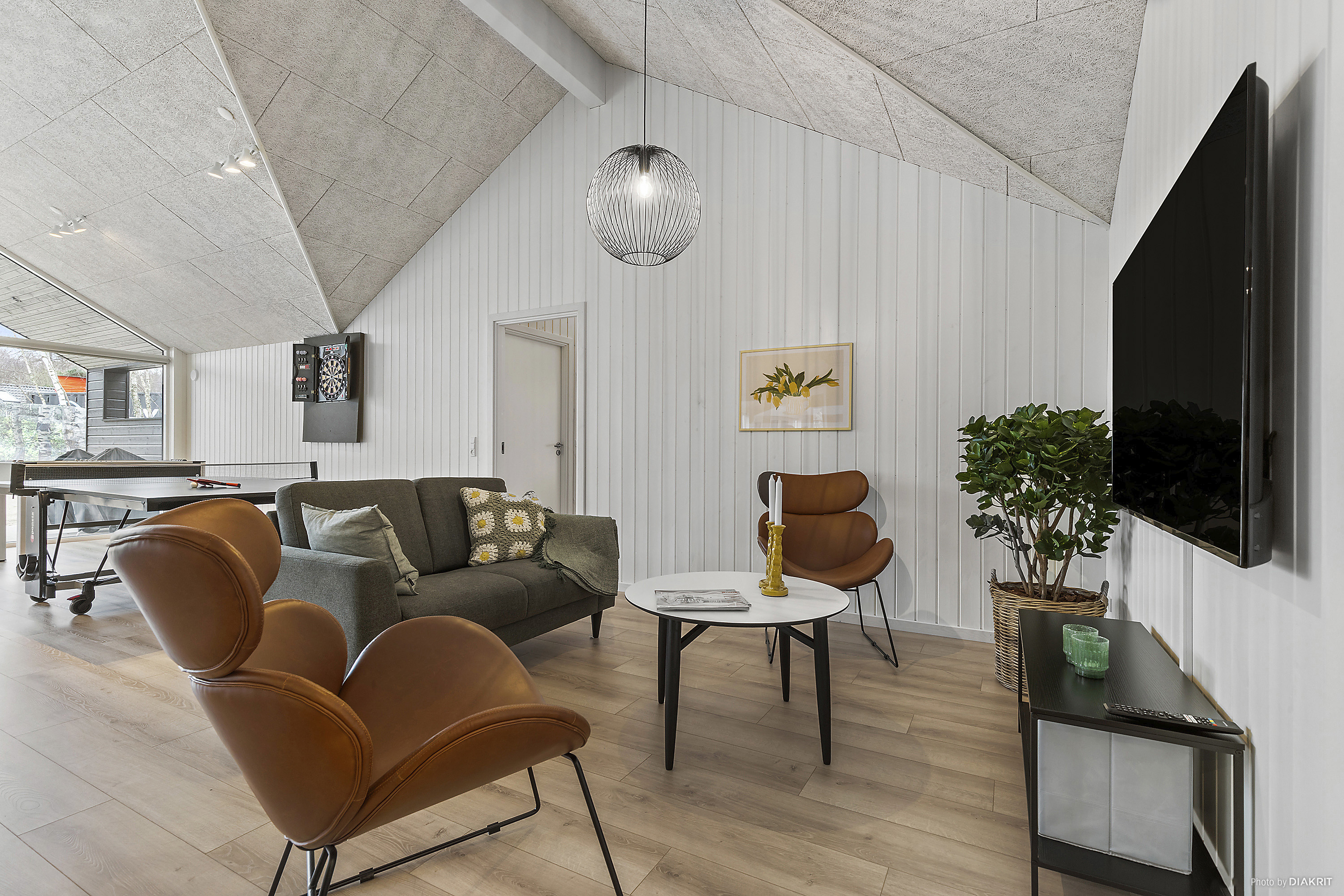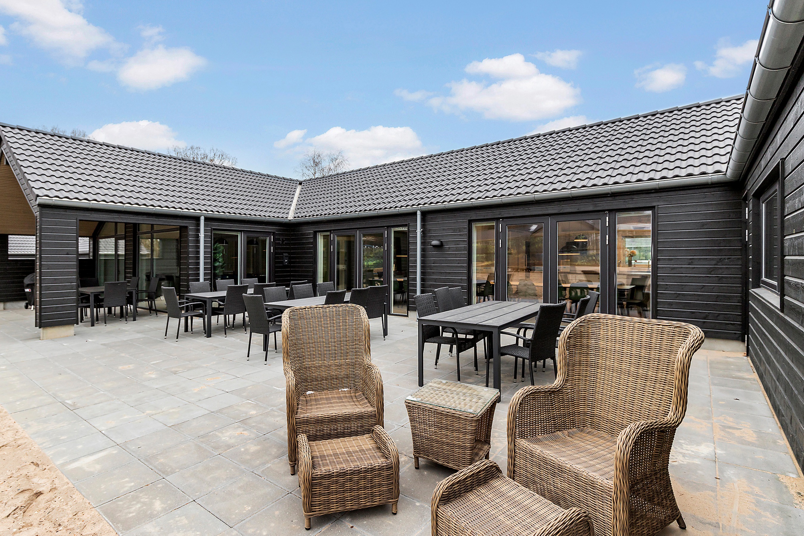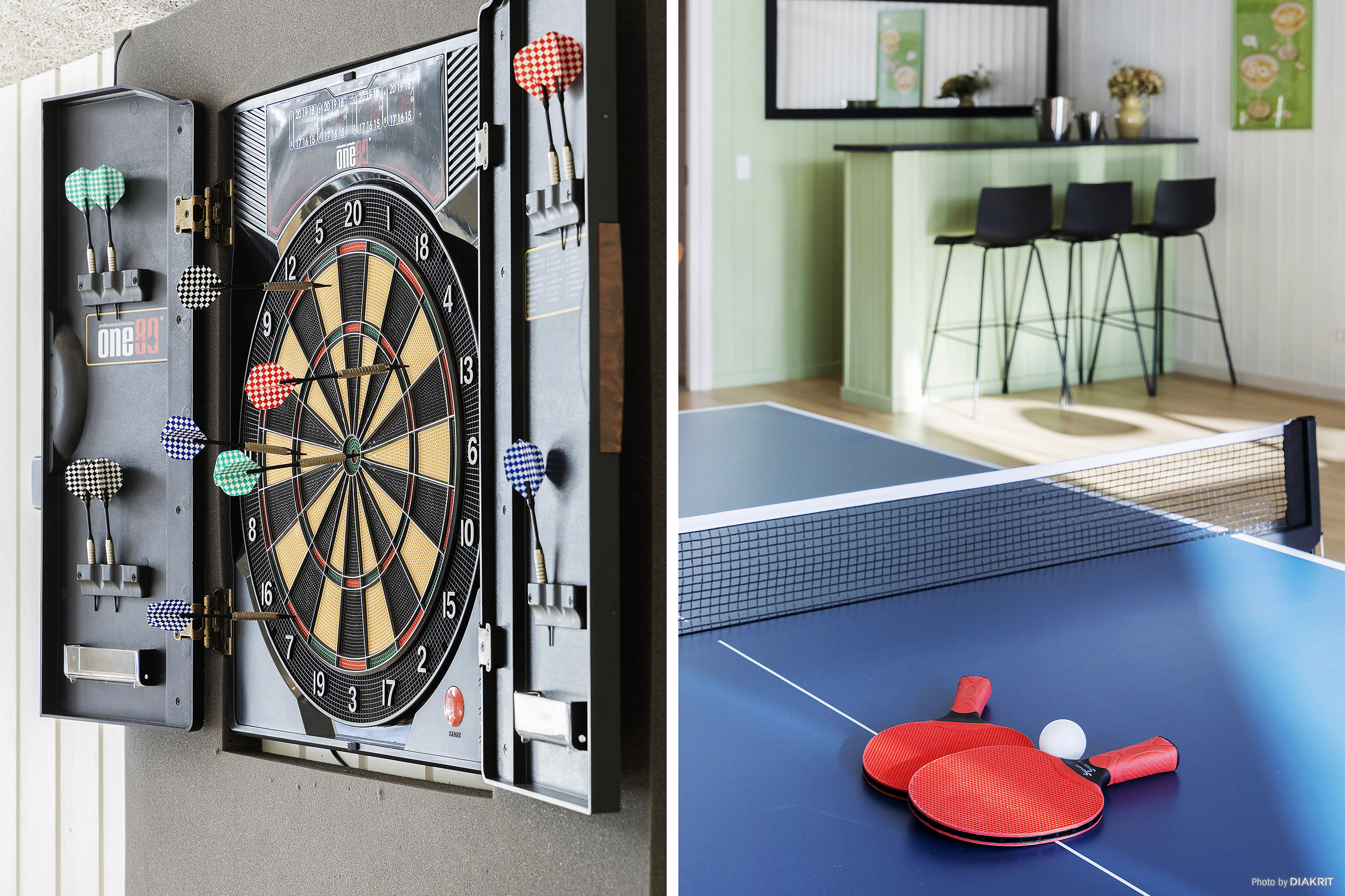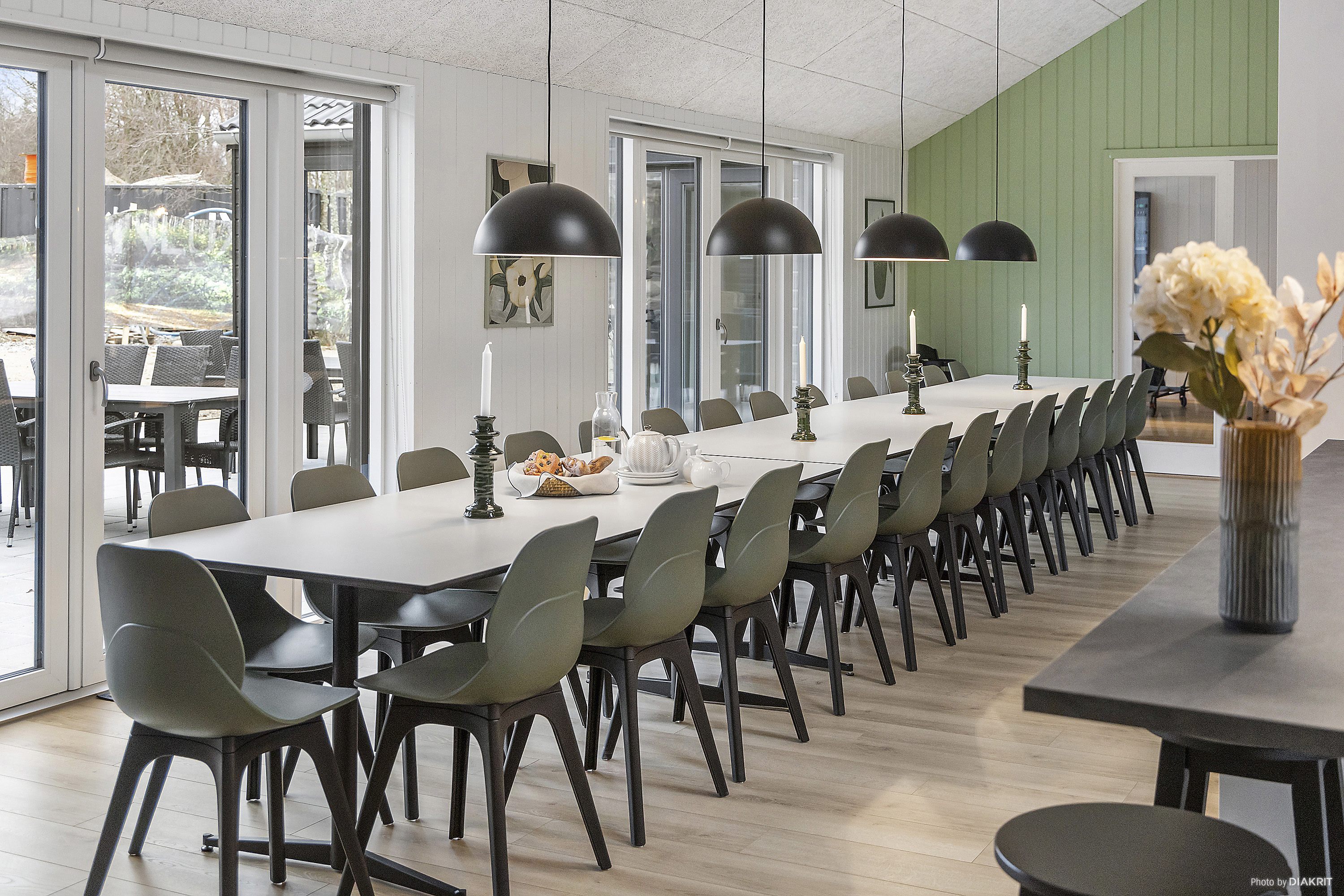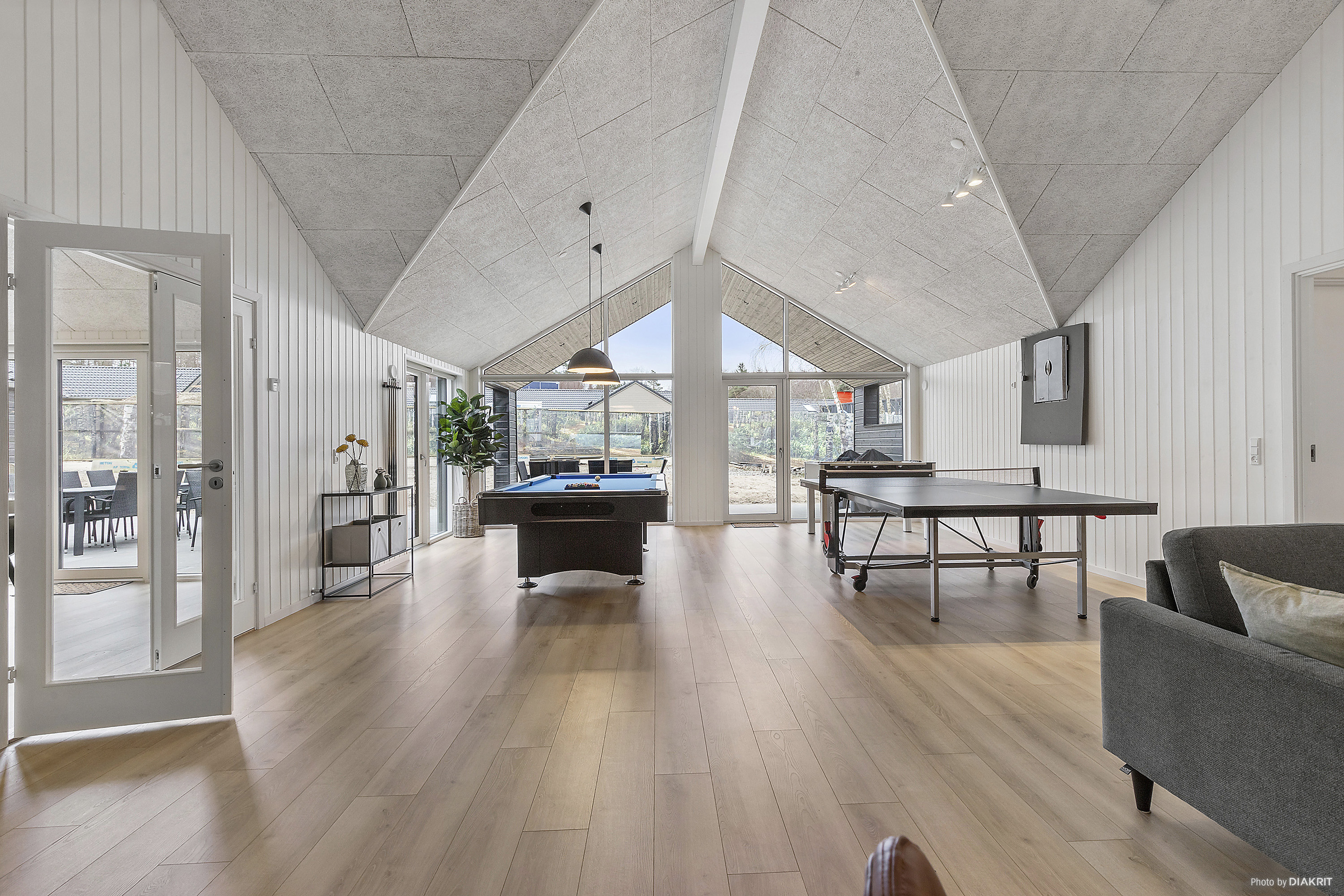 Denne imponerende feriebolig i Fjellerup Feriecenter har plads til hele 26 personer og er perfekt til store familier, vennegrupper eller firmaudflugter. Huset rummer 10 soveværelser fordelt på tre afdelinger samt tre hemse, som især er oplagte til børn og unge. Med fem moderne badeværelser er der rigelig komfort til alle gæster. Blandt husets store højdepunkter er den indendørs pool med rutsjebane, spa og sauna, som sikrer både sjov og afslapning. Det store aktivitetsrum byder på billard, bordtennis, dart og bordfodbold, mens barområdet indbyder til hyggelige aftener med kolde drikkevarer. XL-køkkenet med to køleskabe, to ovne og to opvaskemaskiner gør madlavningen nem, og i det store spiseområde kan alle samles om fælles måltider. Efter middagen er stuen det perfekte sted at nyde en film eller et spil sammen. Udendørs kan hele familien samles på feriecentrets multibane og legeplads, som står frit til rådighed. Huset ligger tæt på strand og natur, og der er privat parkering ved boligen. Bemærk: området er under opbygning, og byggestøj kan forekomme. Bemærk venligst at dette VillaVilla-hus ikke udlejes til ungdomsgrupper.