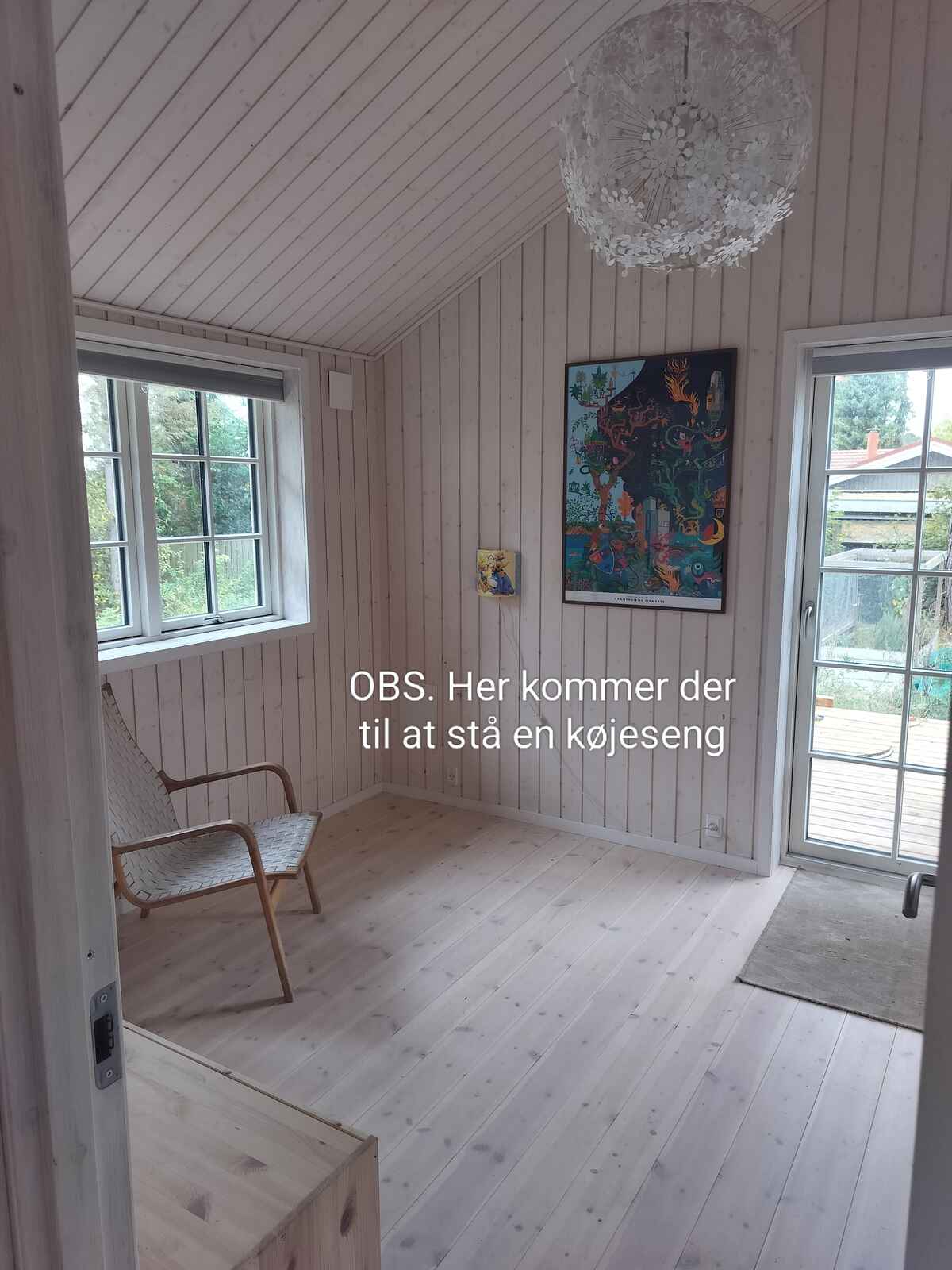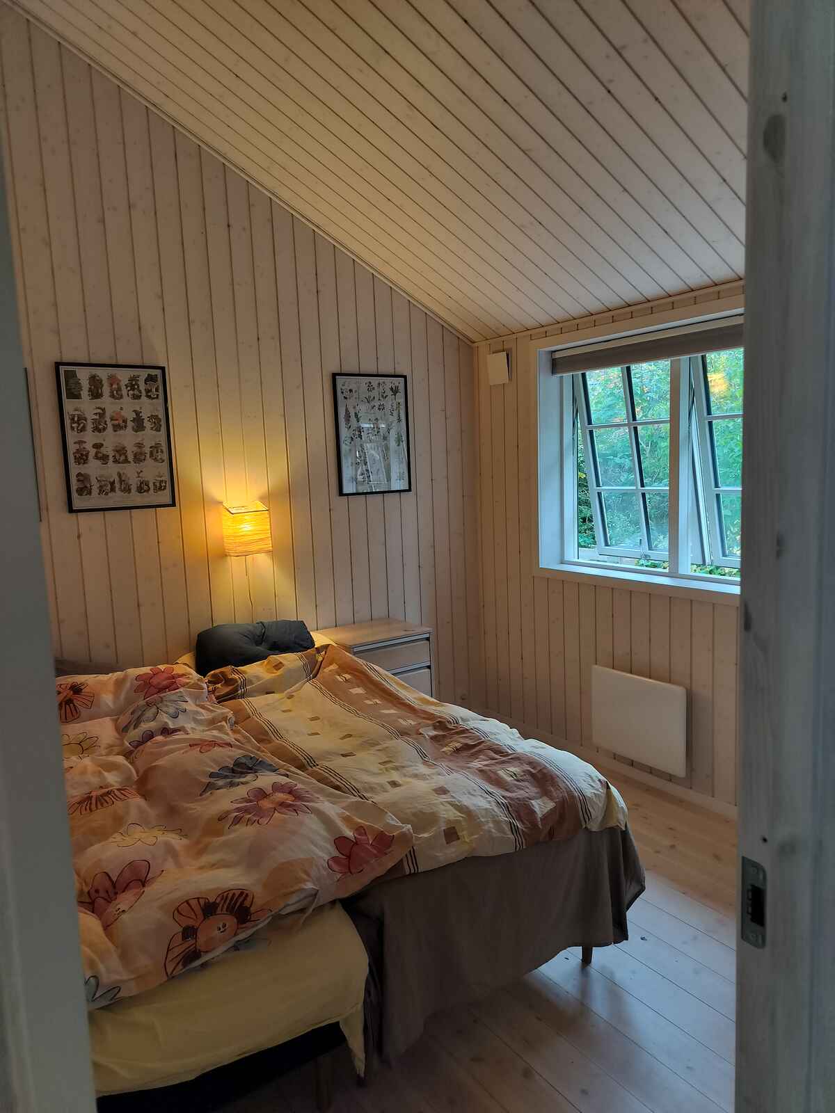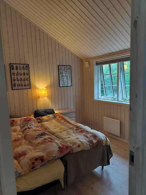 Velkommen til dette dejlige sommerhus med højt til loftet, udsigt over fjorden og en frodig have med et rigt insekt- og fugleliv. Der er plads til 4 voksne og to børn. Køjesengen er kun 160 cm lang.