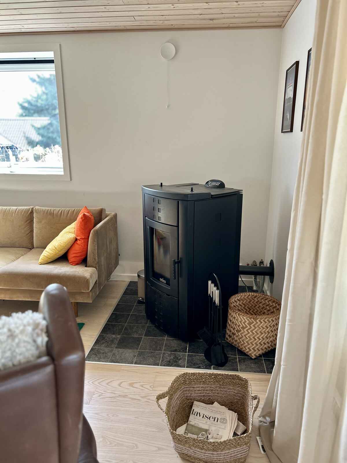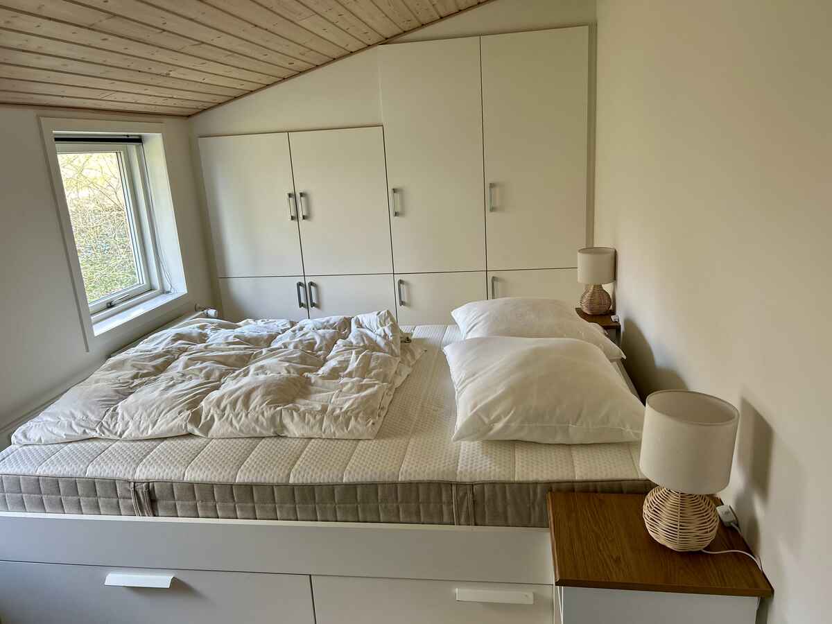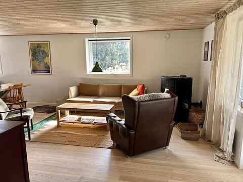Her får I et indbydende sommerhus på 120 m², der danner en behagelig ramme om ferien. Huset rummer 3 soveværelser med i alt 6 sovepladser, et stort badeværelse og et lyst opholdsrum med elektrisk brændeovn, hvor I kan samles efter dagens oplevelser.