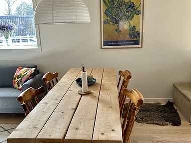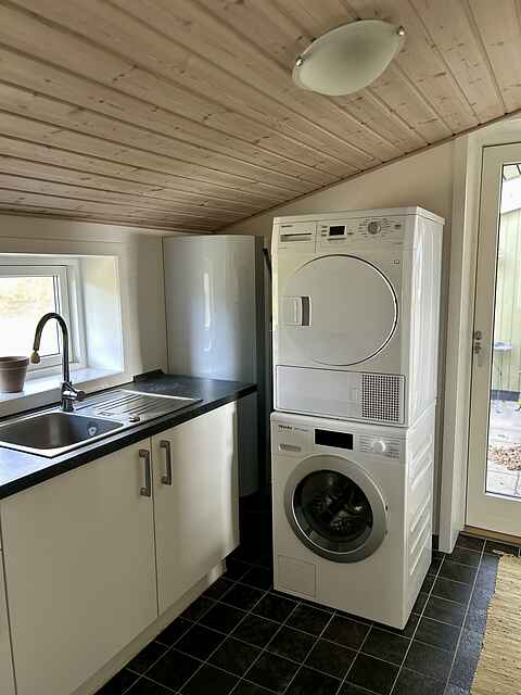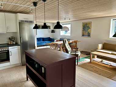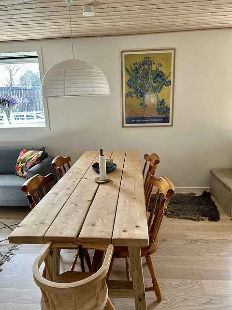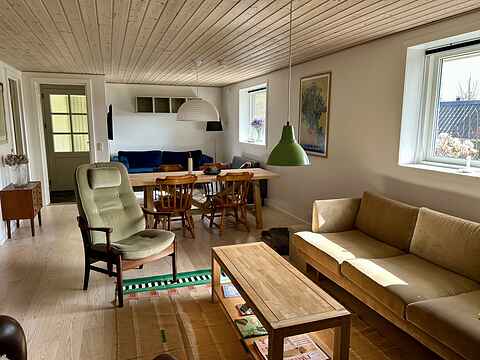 Køkken og opholdsrum er åbent forbundet og udstyret med moderne maskiner, som gør ferien nem og afslappet. Indretningen er funktionel og børnevenlig, så både store og små kan føle sig hjemme fra første dag.