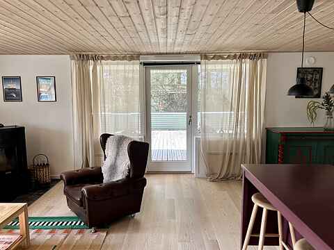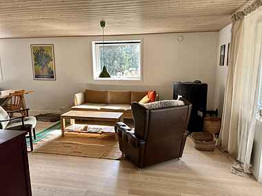 Fra stuen er der udgang til terrasse og privat have, hvor solen og udelivet kan nydes i rolige omgivelser. Her er god plads til leg, afslapning og måltider under åben himmel, og med kort afstand til vandet ligger strand og fjord altid inden for rækkevidde.