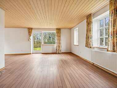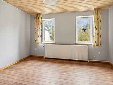 Huset er nymalet i 2025, har fået skiftet flere nye vinduer og opsat ny luft-til-luft varmepumpe til opvarmning/nedkøling.