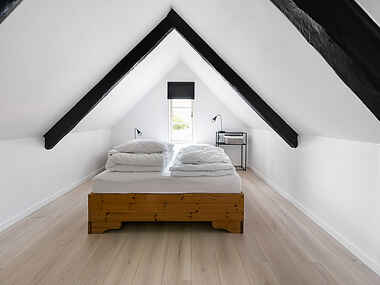 Husets to soveværelser giver plads til en god nats søvn og hvile. Et af dem er en hems, der tilføjer en ekstra dimension til din oplevelse. Stilheden og roen her vil få dig til at føle, at du er langt væk fra hverdagens trummerum.