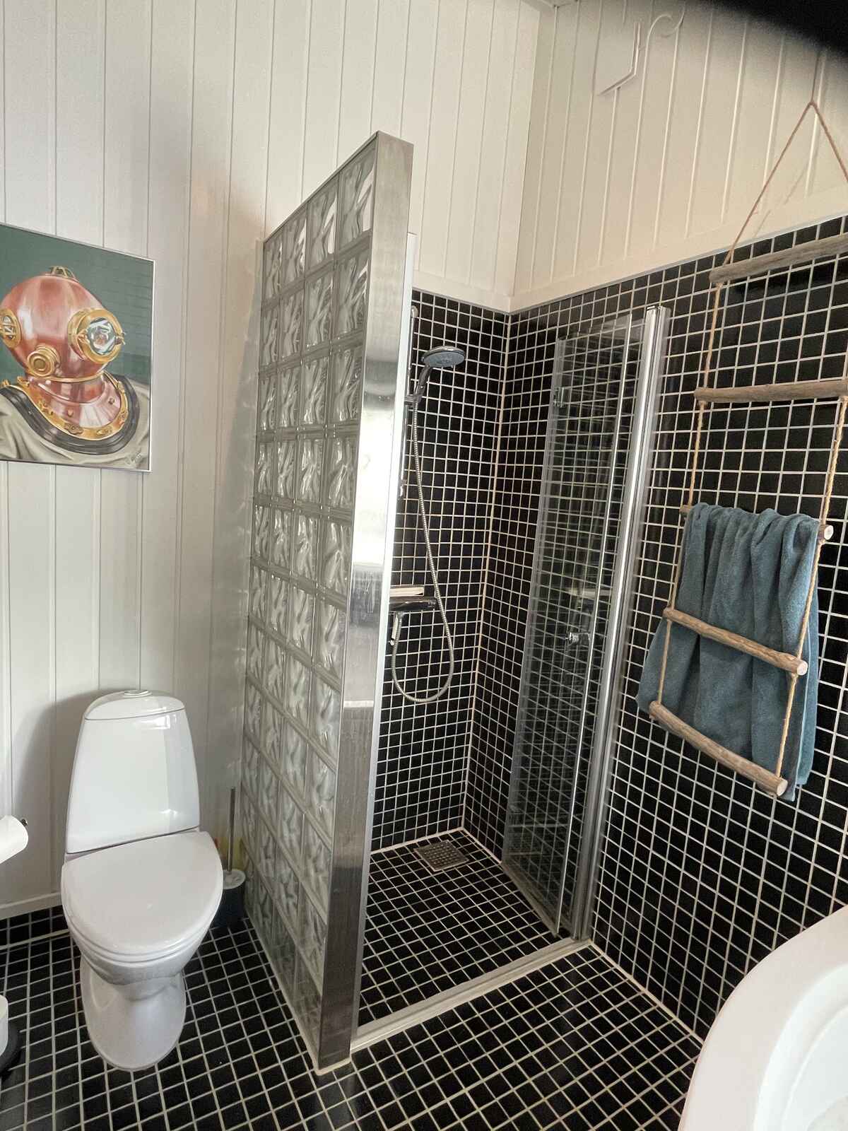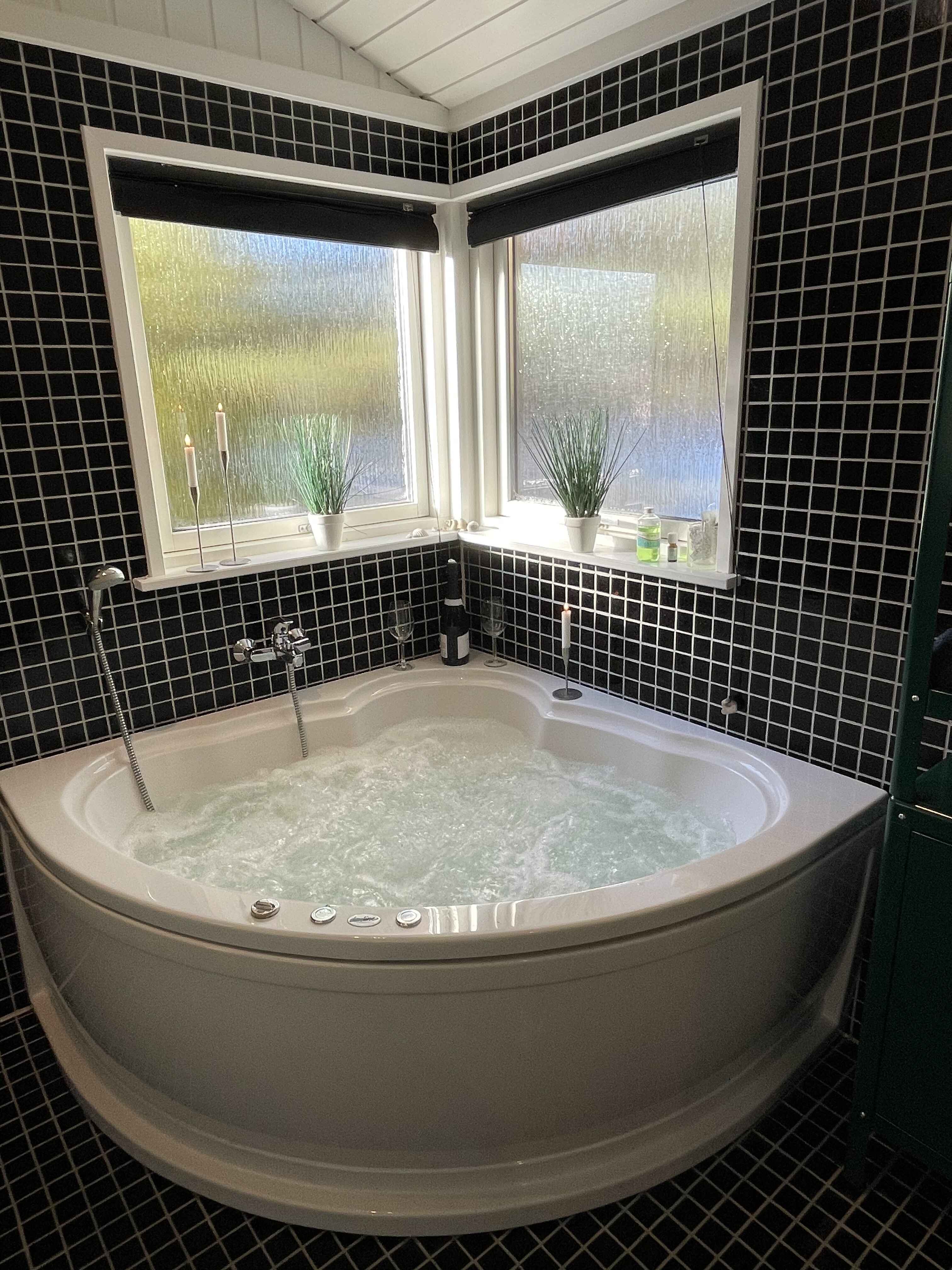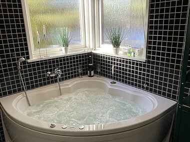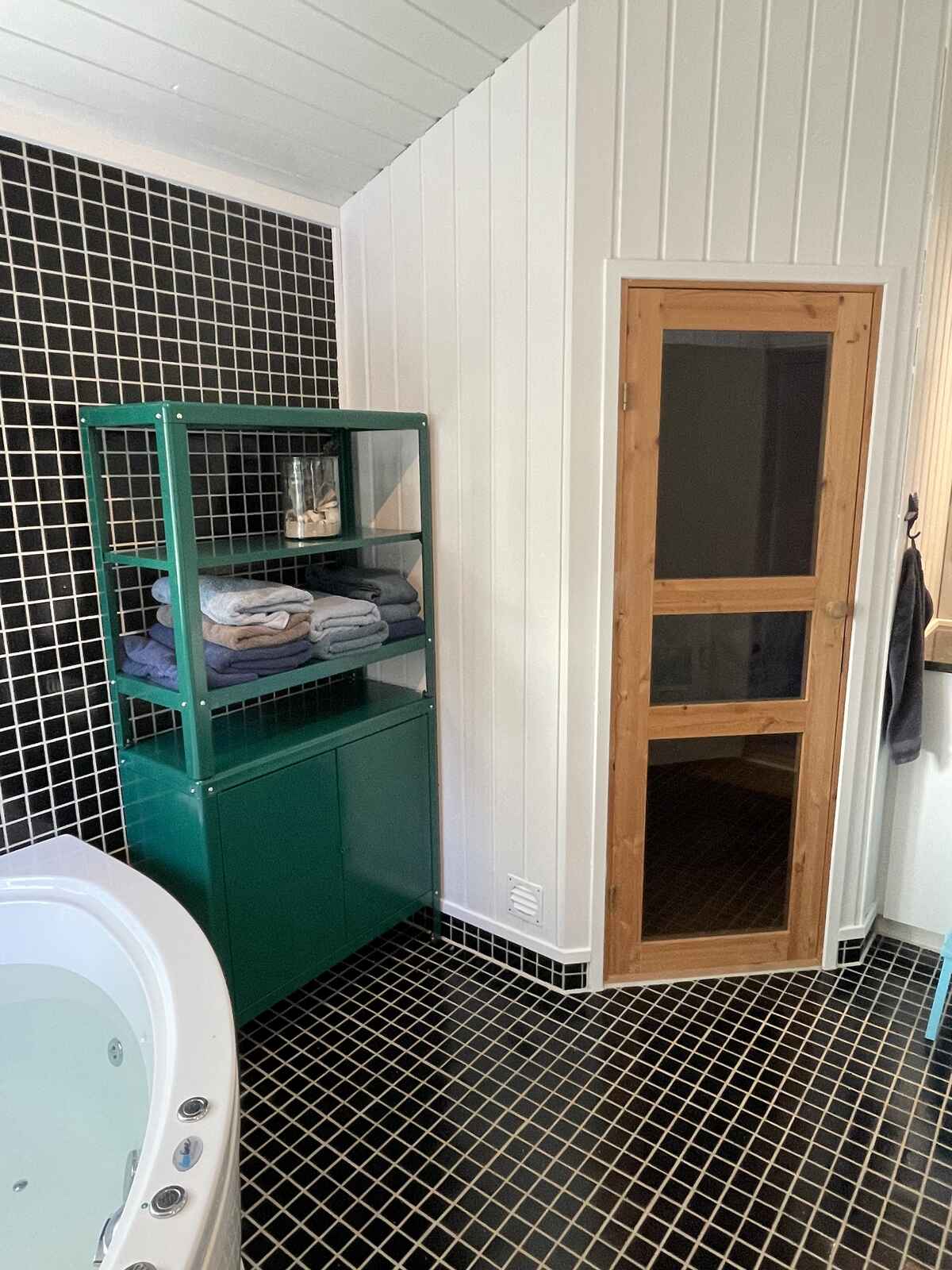 Det ene af de to badeværelser er forsynet med en lækker spa og sauna.