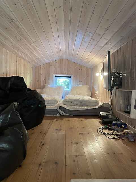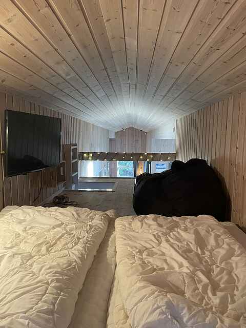 Super dejligt spa-hus med plads til op til 8 personer. Der er i alt 3 soveværelser. To soveværelser med hver 2 enkeltsenge og et soveværelse med en køjeseng til 2 personer og en enkeltseng, der kan skubbes over til køjesengen. Der er også 2 sovepladser på hemsen.