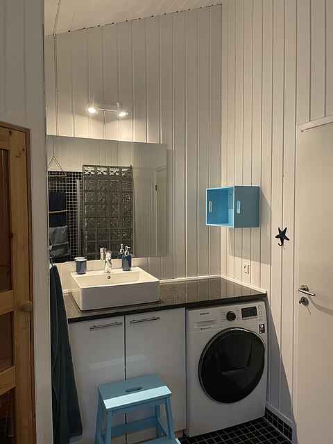 Det ene af de to badeværelser er forsynet med en lækker spa og sauna.