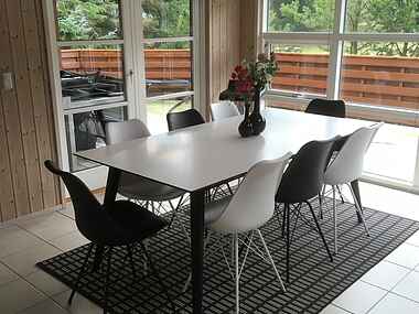 Super dejligt spa-hus med plads til op til 8 personer. Der er i alt 3 soveværelser. To soveværelser med hver 2 enkeltsenge og et soveværelse med en køjeseng til 2 personer og en enkeltseng, der kan skubbes over til køjesengen. Der er også 2 sovepladser på hemsen.
