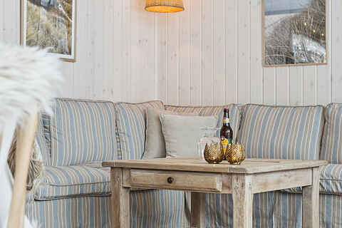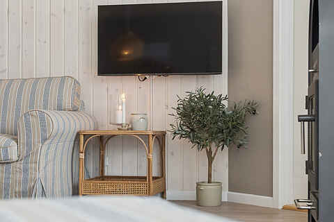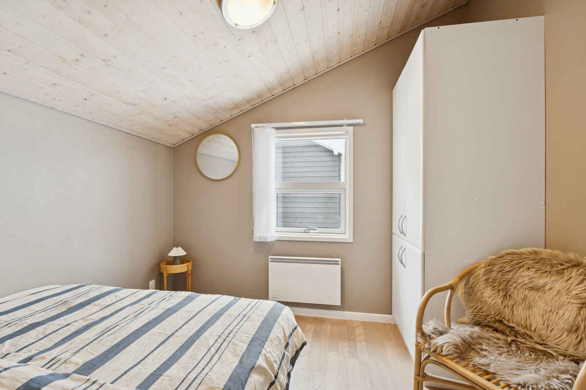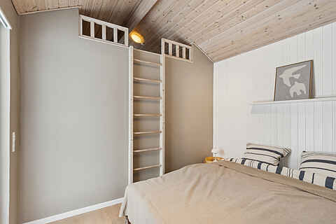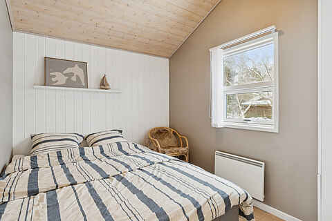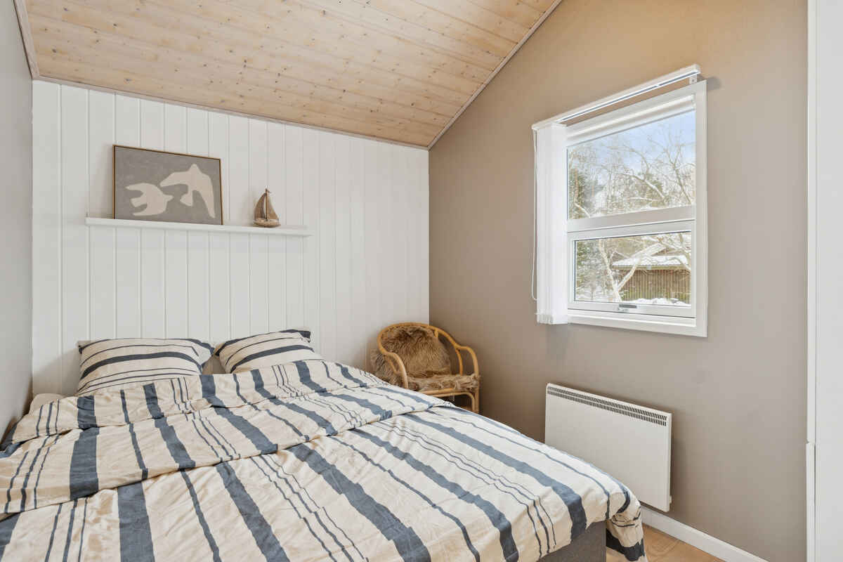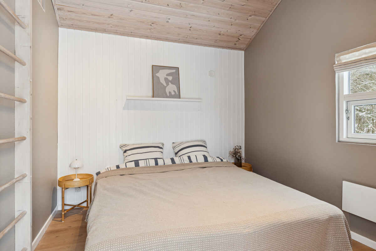 Indretningen er funktionel med tre soveværelser og 5 sovepladser. To værelser ligger i hovedhuset med senge på 160 og 140 cm. Det tredje værelse findes i annekset, som har nye trægulve og en dobbeltseng på 180 cm.