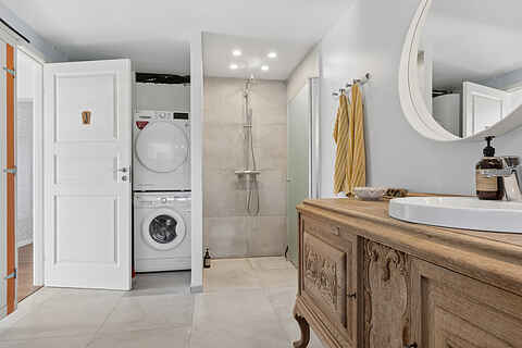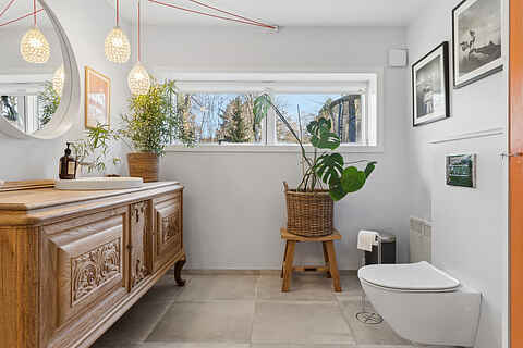 Endvidere finder du to gode værelser med en enkel indretning samt et rummeligt badeværelse med bruseniche.