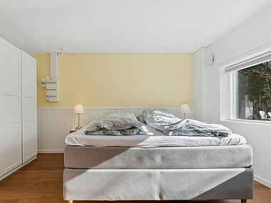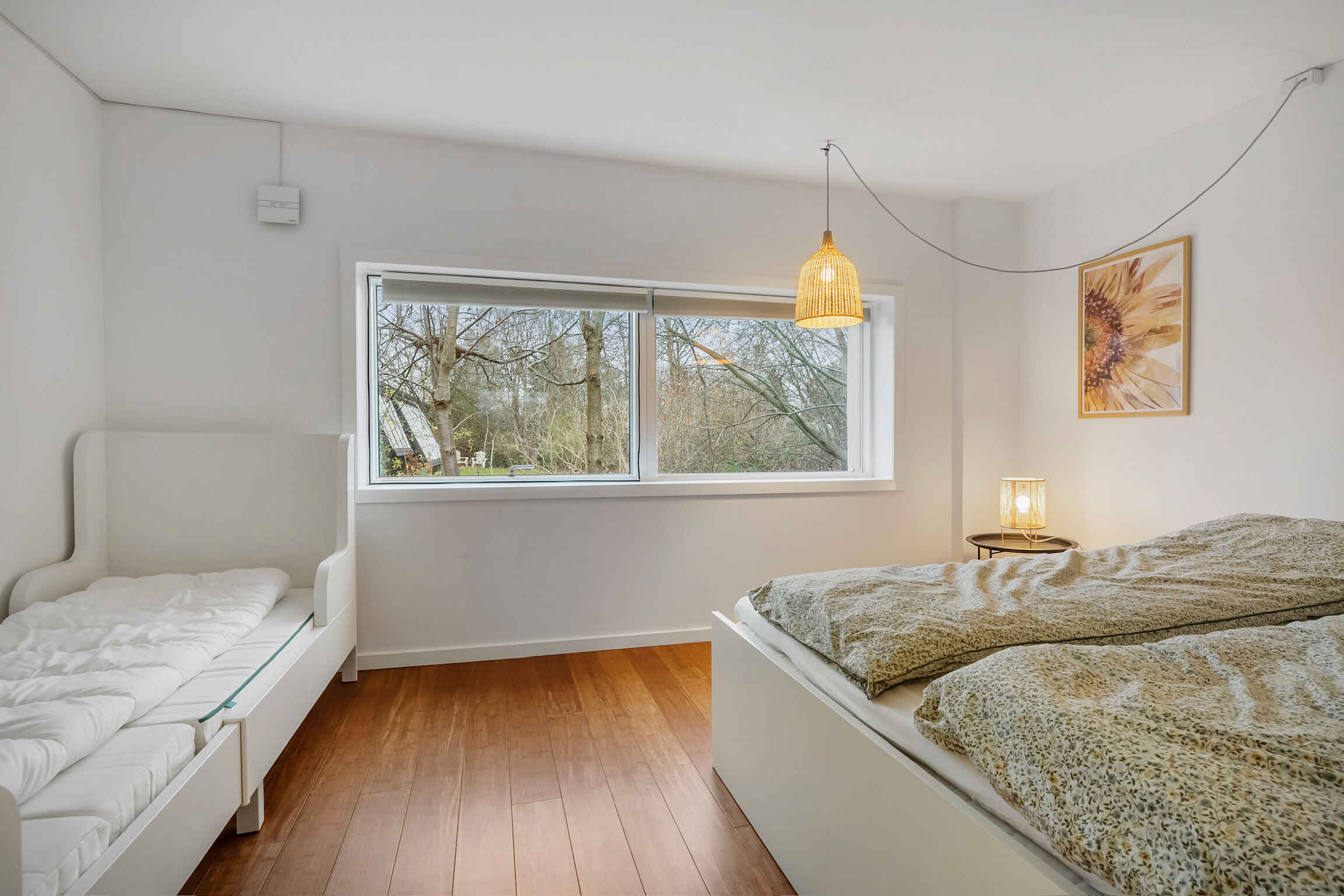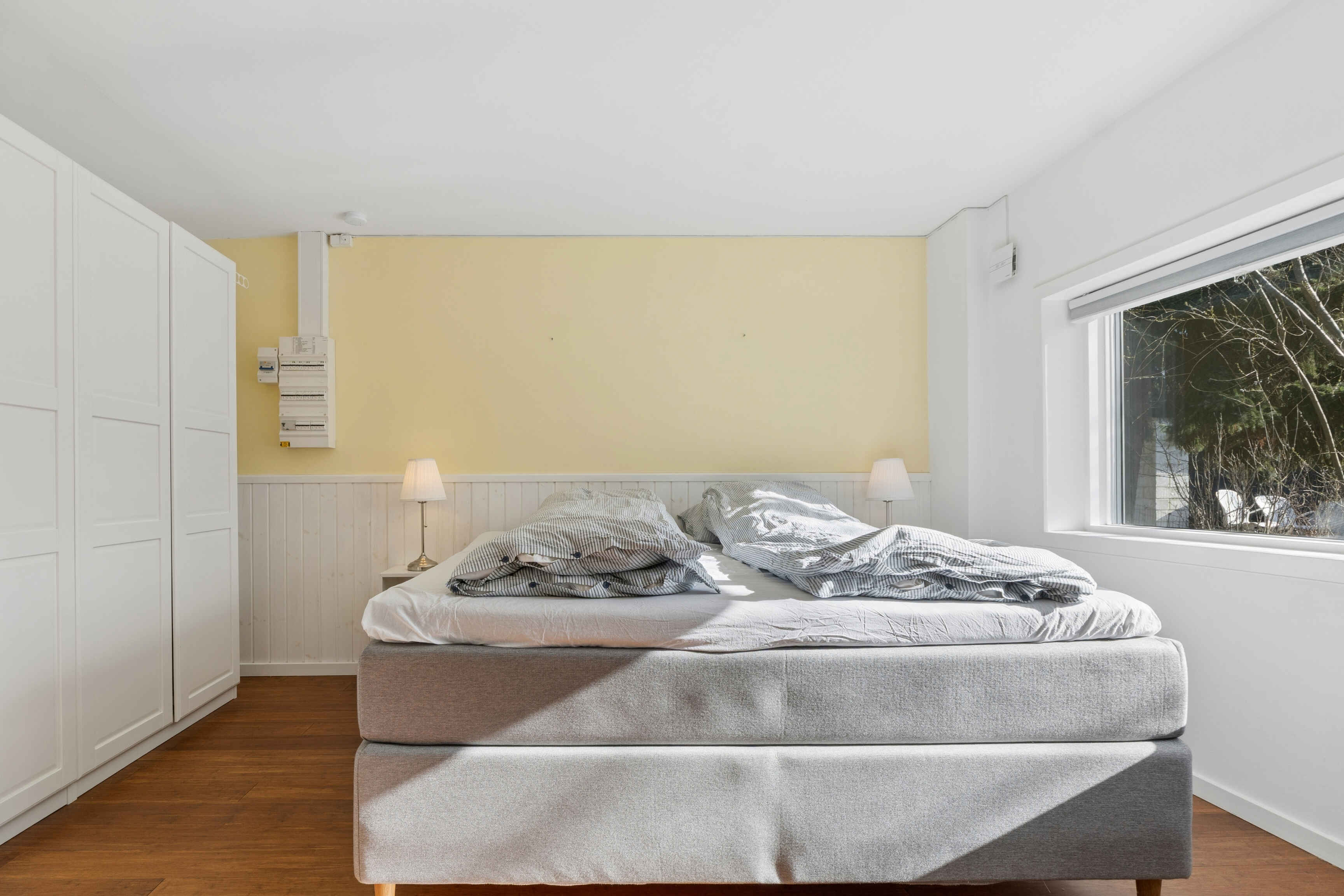 Endvidere finder du to gode værelser med en enkel indretning samt et rummeligt badeværelse med bruseniche.