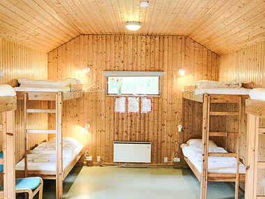 Disse hytter indeholder køjesenge med sovepladser til 4 personer i 7 af dem. Samt en stor hytte med 8 køjesenge.