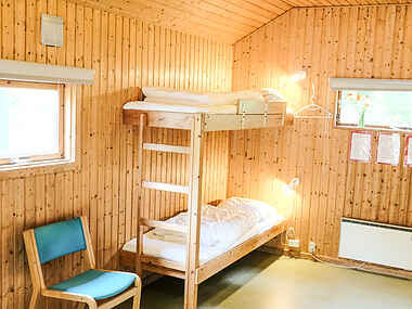 Disse hytter indeholder køjesenge med sovepladser til 4 personer i 7 af dem. Samt en stor hytte med 8 køjesenge.