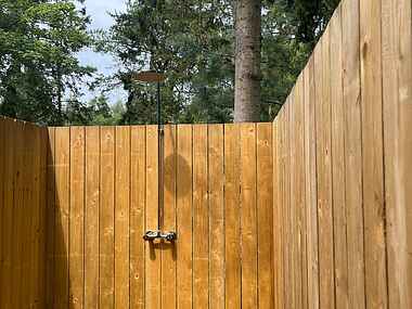 Badeværelset gennemgår er større renovation i vinteren 2024, så der kommer varme i gulvet samt en vaskesøjle. Som badeværelset er i dag, er det fuldt funktionelt med toilet, vask og bruser.