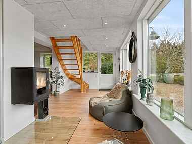 Dette charmerende sommerhus er det ideelle valg for en afslappende ferie. Med 110 m2 og to soveværelser er der plads til op til seks personer. Indretningen er lys og indbydende med en hyggelig stue, hvor en brændeovn skaber en varm atmosfære. Her kan I nyde aftenerne med brætspil eller en god bog.
