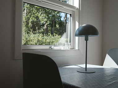 Køkkenet er åbent og lyst med spiseplads til seks personer. Her finder I ovn, induktionskogeplader, køleskab med fryser, airfryer, emhætte og kaffemaskine. Stuen byder på hjørnesofa, sofabord samt en lænestol med puf. Her er også tv og WiFi, så I kan slappe af med film eller spil.