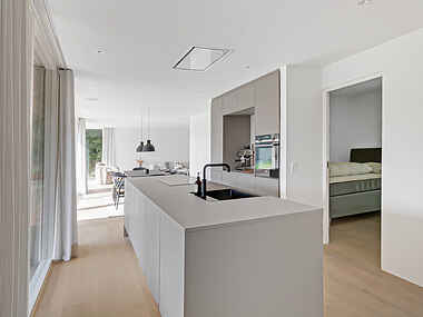 Praktiske bekvemmeligheder som vaskemaskine og tørretumbler er selvfølgelig til rådighed, så du kan nyde friheden ved at have alt, hvad du behøver. Det moderne køkken er udstyret med faciliteter, der indbyder til fælles madlavning med hele familien, takket være den store køkkenblok, der giver plads til alle.
