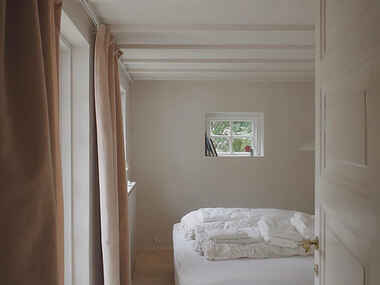 Indretningen kombinerer moderne komfort med original charme. Der er anvendt kvalitetsmaterialer som brede Dinesen Douglas-gulve, synlige bjælker og et stilfuldt, køkken i træ. Huset rummer et lyst soveværelse med direkte udgang til flisebelagt terrasse, stor stue/ spisestue med loft til kip. Selvstændigt køkken, hems med 2 sovepladser (sengen på hemsen er 1,20 m bred) og et badeværelse med bruseniche. Der er WiFi, tv, opvaskemaskine, vaskemaskine og fuldt udstyret køkken.