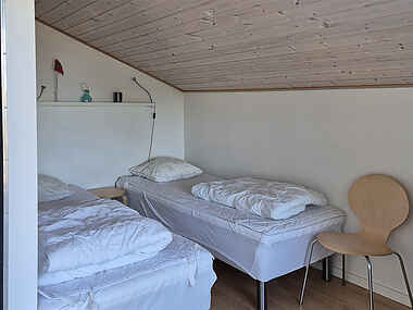 Der er plads til 6 personer fordelt på tre soveværelser, som hver er indrettet med to boksmadrasser (80 x 200 cm). Badeværelset har gulvvarme, bruseniche og kombineret vaskemaskine/tørretumbler.