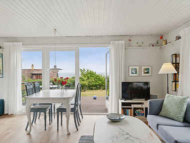 Dejligt sommerhus med flot havudsigt og en rolig beliggenhed, kun 500 meter fra en god sandstrand og smukke klipper.
