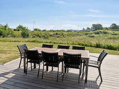 Til huset hører en stor, delvist overdækket træterrasse med havemøbler, hvor I kan slappe godt af og nyde solen og den friske luft til et glas vin. I har også en gasgrill til rådighed, så I kan afslutte en eller flere feriedage med en hyggelige grillaften. Derudover har huset en udebruser, som er perfekt til at skylle sandet af sig efter en strandtur. Har I elbil, så har huset en ladeboks med 7 m kabel med type-2-stik.
