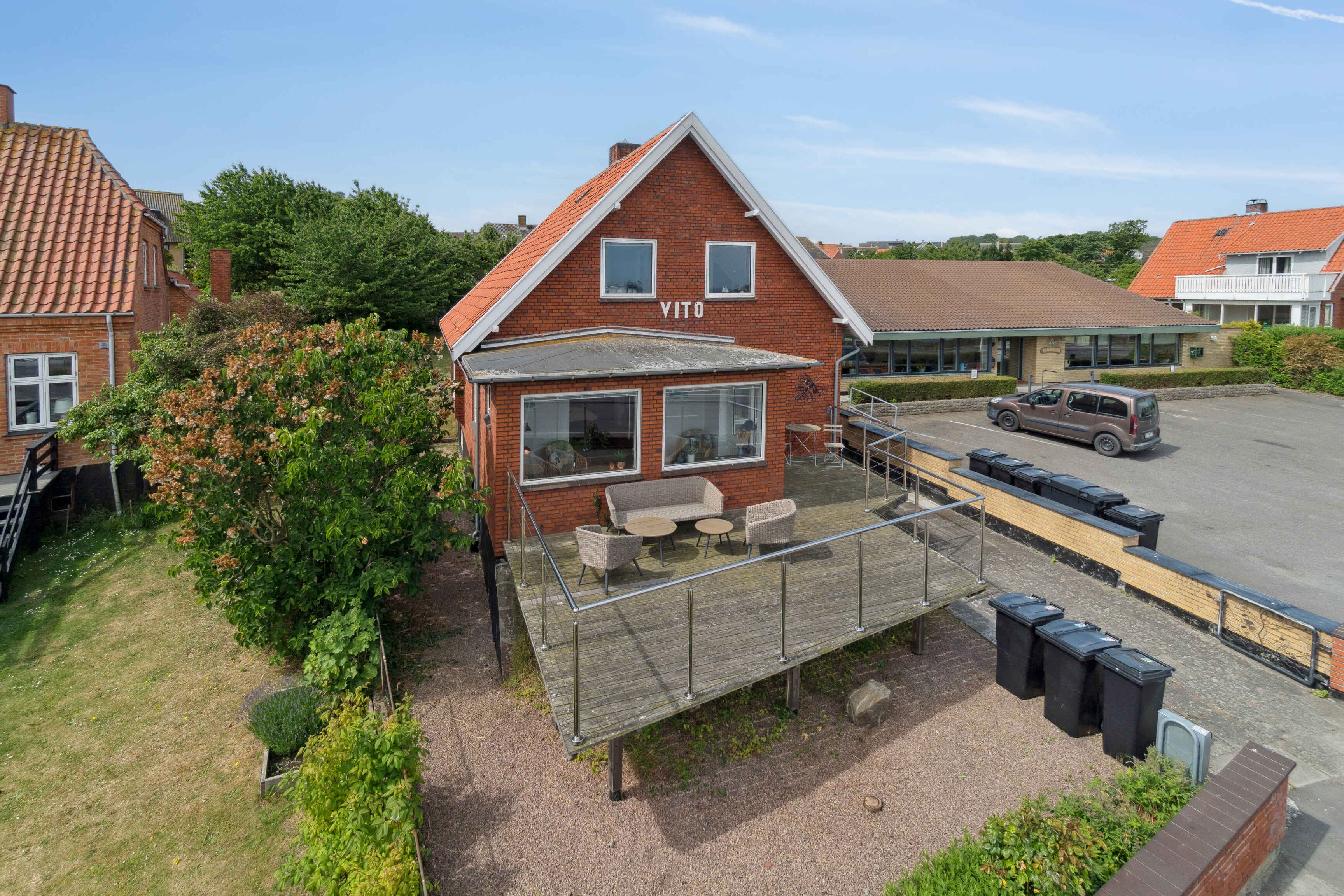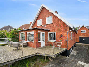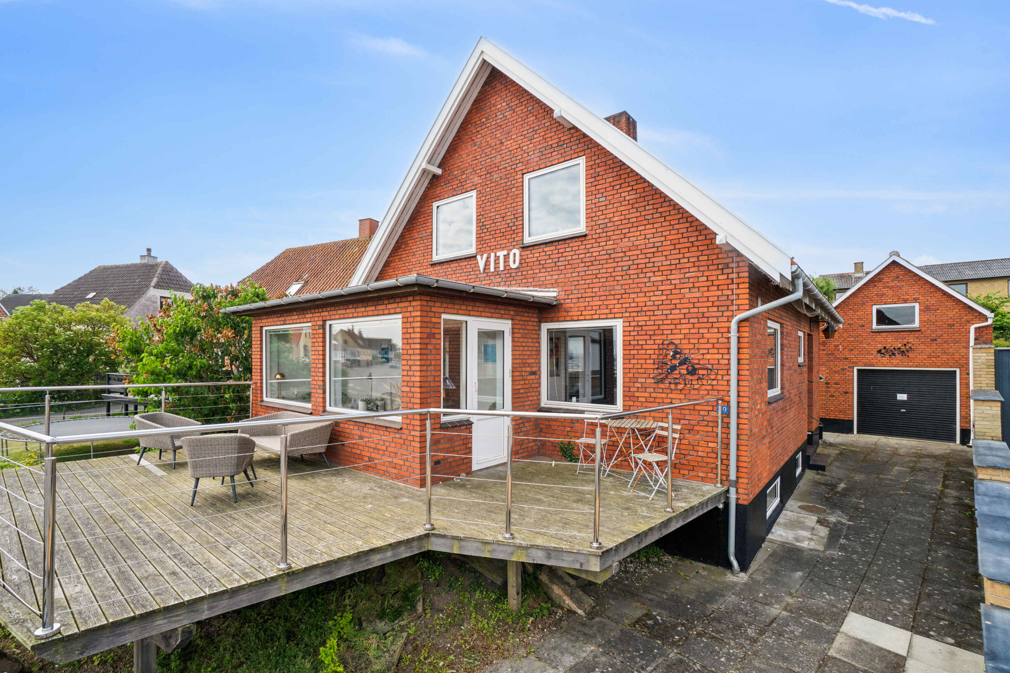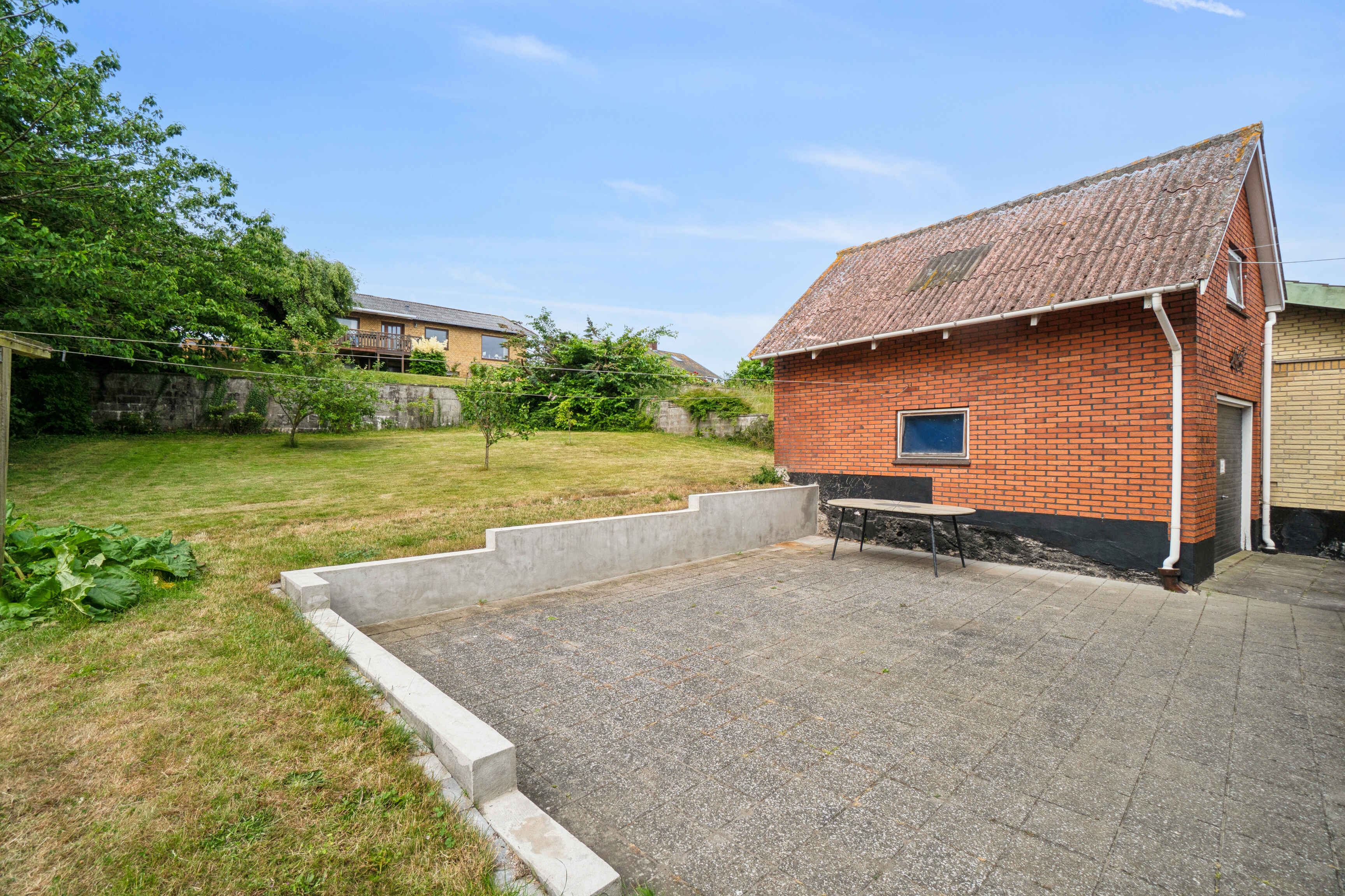 Huset er beliggende på en stor og hyggelig grund med både græsplæne, stenterrasse og balkon mod Østersøen. Den store grund giver god mulighed for sol hele dagen. Fra entreen er der udgang til den store terrasse med havemøbler, grill og liggestole. Balkonen har direkte adgang fra stuen. På den tilhørende græsplæne kan der hygges med børnene, uden der er risiko for trafik. Bilen kan parkeres direkte ved huset.