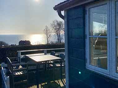 Grundens placering for enden af en malerisk sidevej byder på en smuk havudsigt. En velplejet have med græsplæner og charmerende træterrasser danner rammen om solrige oaser. Du kan trække dig ind under den dejlige overdækning om aftenen og lade den betagende udsigt under tagen fortrylle dig.