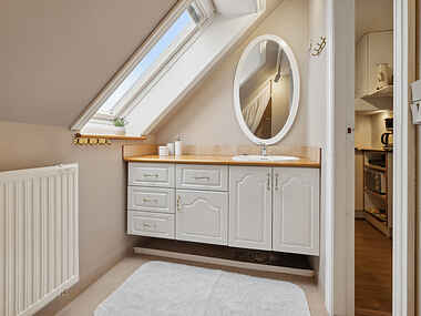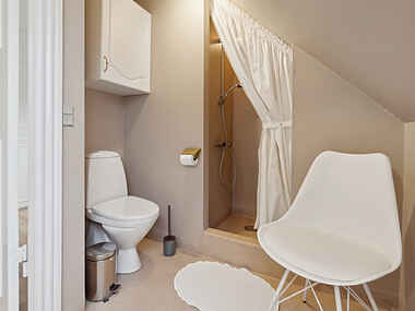 Lejligheden har en lys stue med sovesofa og et hyggeligt soveværelse, der giver plads til fire gæster. Her kan du nyde ro og afslapning med udsigt til den idylliske have, der har både terrasse, havemøbler og grill, perfekt til afslappende aftener. Doppelsengen i værelset kan arrangeres som to enkeltsenge. De to andre sovepladser er på den dobbelte sovesofa. Lejligheden opvarmes med fjernvarme.