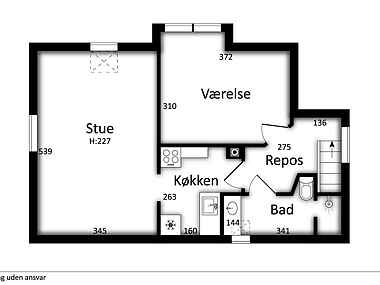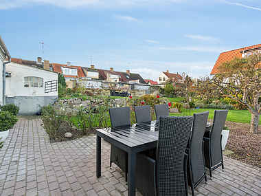 Lejligheden har en lys stue med sovesofa og et hyggeligt soveværelse, der giver plads til fire gæster. Her kan du nyde ro og afslapning med udsigt til den idylliske have, der har både terrasse, havemøbler og grill, perfekt til afslappende aftener. Doppelsengen i værelset kan arrangeres som to enkeltsenge. De to andre sovepladser er på den dobbelte sovesofa. Lejligheden opvarmes med fjernvarme.