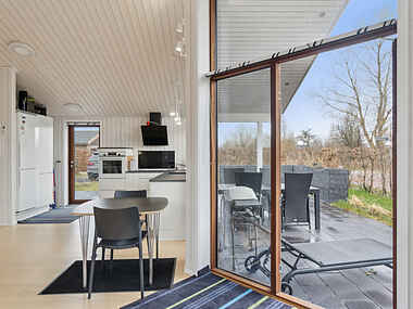 Huset har en funktionel indretning med et åbent køkken og opholdsområde, der skaber et indbydende miljø til hyggelige aftener. Brændeovnen gør opholdet særligt behageligt, når mørket falder på.