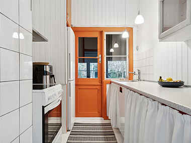 Boligens indretning er enkel og funktionel med et rummeligt badeværelse og en dejlig stue med brændeovn. Huset er godt udstyret med opvaskemaskine, internet og fjernsyn.