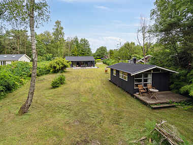 Udendørsområdet er en oase af afslapning og hygge. På terrassen står der behagelige havemøbler, hvor I kan nyde morgenkaffen eller læse en god bog i solen. Naturgrunden byder på både en bålplads, hvor I kan samles om aftenen og riste skumfiduser, en hængekøje til afslapning under træernes skygge og en grill, der inviterer til udendørs madlavning og hyggelige middage i det fri.