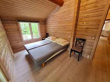 Sommerhuset byder på 180 m2 fordelt på fire værelser med sovepladser til 12 personer. Heraf to med dobbeltseng, et med to køjesenge samt et stort familierum med dobbeltseng og køjeseng.