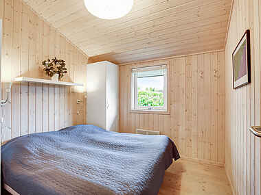 Soveværelserne til de voksne er stort set ens og har hver 2 sammenstillede enkeltsenge og 2 garderobeskabe. Børneværelset har 2 køjesenge i børnestørrelse og et bord, hvor man f.eks. kan sidde og tegne.