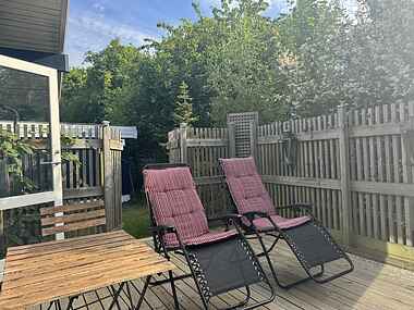 Huset inviterer til hygge året rundt med en rummelig havestue, der ikke kun forlænger sæsonen, men også byder på en betagende udsigt over den omkringliggende have. I havestuen er der yderlige to sovepladser med en day-bed, der har to madrasser. Terrasser omgiver huset og skaber dejlige områder til at nyde morgenkaffen eller grille om aftenen, mens naturens ro omkring dig fuldender ferieoplevelsen.