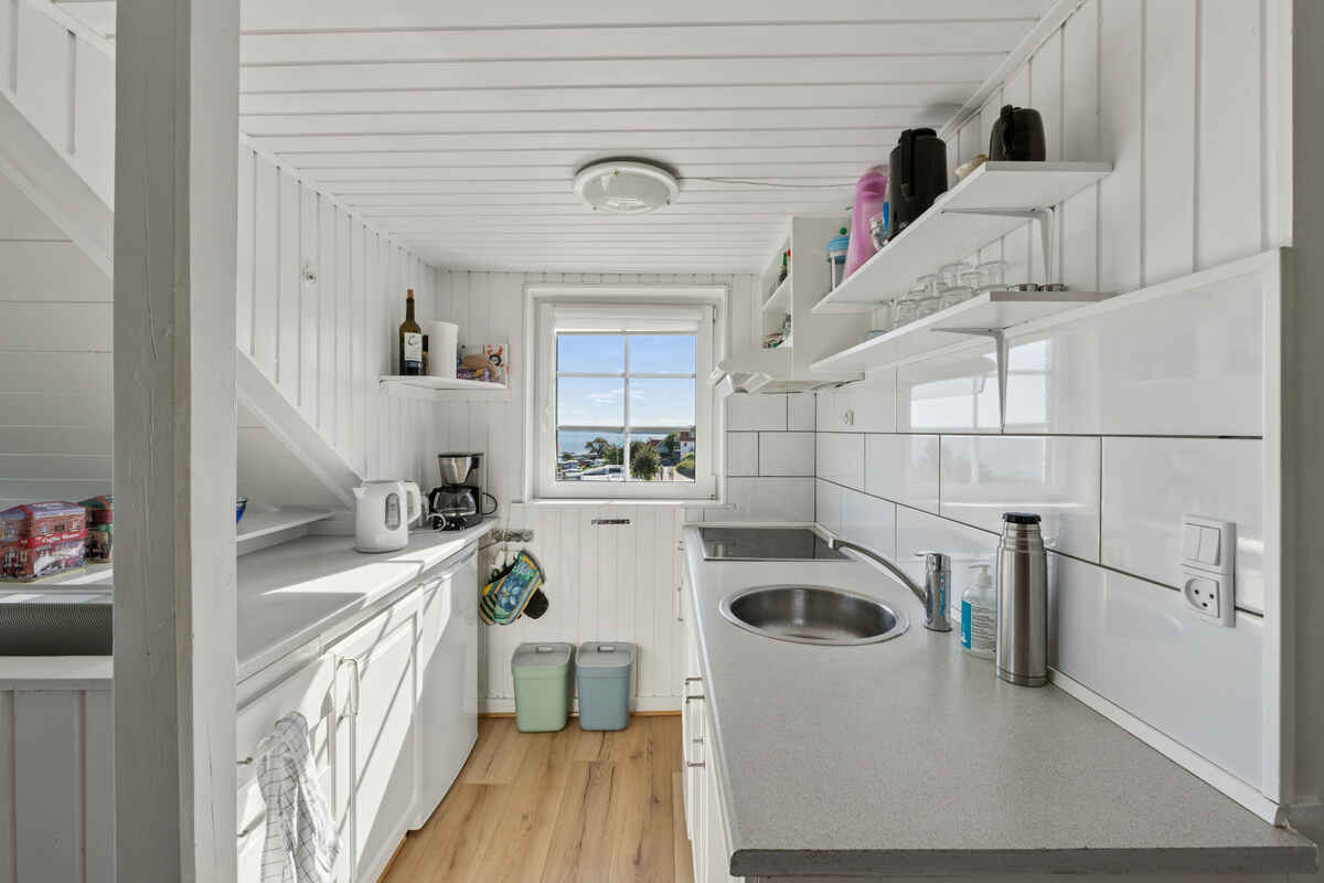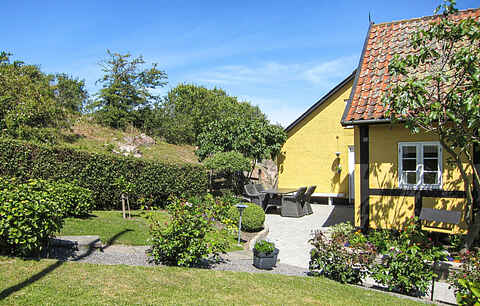 Ejendommen er pænt og hyggeligt indrettet til seks personer, så her kan I lade op efter jeres ture rundt på øen. Bedst af alt er den skønne have med terrasse, havemøbler og grill, hvor I kan nyde den helt forrygende udsigt til det blå, blå hav. Mod vest er der endnu en terrasse med havemøbler.