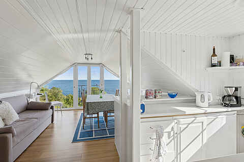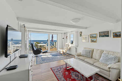 En spændende lejlighed, som byder på et dejligt nærmiljø med imponerende klippekyst og fin sandstrand.
