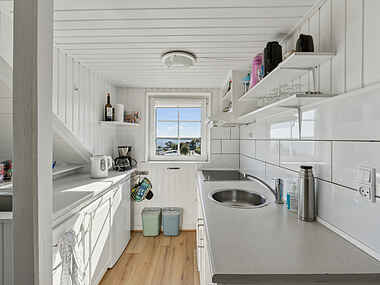 Ejendommen er pænt og hyggeligt indrettet til seks personer, så her kan I lade op efter jeres ture rundt på øen. Bedst af alt er den skønne have med terrasse, havemøbler og grill, hvor I kan nyde den helt forrygende udsigt til det blå, blå hav. Mod vest er der endnu en terrasse med havemøbler.
