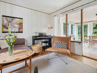 Sommerhuset har en dejlig udestue fra 2017, der inviterer til afslappende stunder året rundt. Den nyetablerede udebruser og shelter i haven skaber unikke muligheder for udendørs hygge og komfort.